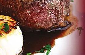 Mash 4 Tbsp butter with the parsley, chives, lemon zest, lemon juice and mustard in a small bowl. Scoop the butter mixture onto a sheet of plastic wrap. Wrap up and form into a 3” log. Refrigerate until rm, about 30 min. Preheat the oven to 450˚. Generously season the steaks on both sides with salt and pepper. Wrap each steak around the edge with a slice of bacon and secure with a toothpick.