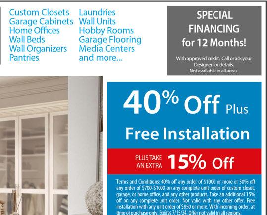 Yes, you can customize your building. • Highest quality workmanship (built by quality conscious craftsman) FREE Delivery and Set Up • NO security deposits •Buy or Rent-To-Own NO CREDIT CHECKS PROUDLY serving the residents of Sandusky, Seneca, Ottawa, Wood, Wyandot, Crawford, Hancock, Lucas, Erie, and Huron Counties for over 13 years. Be sure you also check out our Carports, Pole Barns, and RV Shelters Dave’s Sheds and More 419-680-0089 any Dura-Built shed purchase 15% OFF With coupon. Not valid with any other offers. One coupon per order. Offer expires July 15, 2024 2318 West McPherson Highway (St.Rt. 20) (Between Fremont and Clyde) Fremont, Ohio 43420 419-680-0089 www.davesshedsandmore.com AREA’S BEST PRICES!