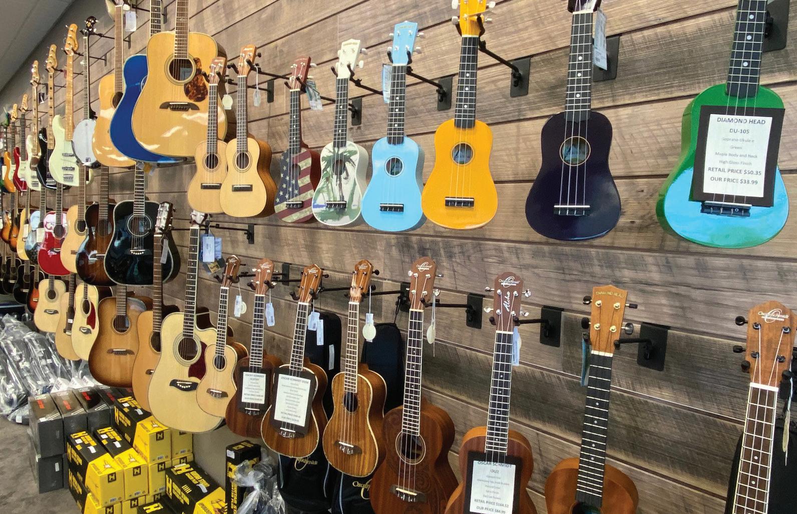 We carry popular brands of guitars and ukes by: Alvarez, Diamond, Oscar Schmidt, Tagima, Washburn and Yamaha! Amps by Ampeg, Marshall and Yamaha!