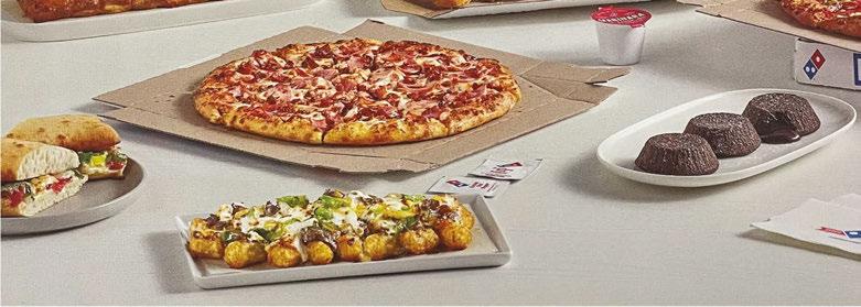 Valid with coupon. At participating restaurants only. Expires 05-15-24. CHEESY DEAL $1799 Large 2-Topping Pizza & Your Choice of Stuffed Cheesy Bread Cheese only • Spinach & Feta Bacon & Jalapeño • Pepperoni 5129 at the BP in Huron 419-433-5494 EVERYDAY Order online at Dominos.com Tax not included. $14 minimum for delivery. Delivery charge applies. Prices subject to change. Any delivery charge is not a tip paid to your driver. Valid with coupon. At participating restaurants only. Expires 05-15-24. 6440 $2299 PICK 2 DEAL 2 Large 1-Topping Pizzas & 8 pc. Twists Valid with coupon. At participating restaurants only. Expires 05-15-24. LARGE PLUS 1 6714$1799 Large Pizza plus Dip & Twists Valid with coupon. At participating restaurants only. Expires 05-15-24. LARGE PLUS 2 $1799 Large 2-Topping Pizza and 8-piece chicken 9171 $999 Valid with coupon. At participating restaurants only. Expires 05-15-24. HANDMADE PAN 9204 Medium 2-Topping Handmade Pan Pizza Valid with coupon. At participating restaurants only. Expires 05-15-24. FAMILY FEAST $2799 2 Large 2-Topping Pizzas & 32-Piece Parmesan Bread Bites 6422 Valid with coupon. At participating restaurants only. Expires 05-15-24. AWESOME DEAL 5163 $1599 Large Specialty Pizza OR Large 5-Topping Pizza Valid with coupon. At participating restaurants only. Expires 05-15-24. FAMILY FEAST $2499 Large Specialty Pizza & Large 2-Topping Pizza 5406 Valid with coupon. At participating restaurants only. Expires 05-15-24. MEAL DEAL $1599 Large 2-Topping Pizza and Loaded Tots 5175 $999 Valid with coupon. At participating restaurants only. Expires 05-15-24. PIZZA PARTY 1000 CARRY-OUT SPECIAL: Any 2-Item Pizza, Any Size, Any Crust Valid with coupon. At participating restaurants only. Expires 05-15-24. 5885 WANT IT ALL? $1999 Large Pizza, 16 Parmesan Bites, and a 2-Liter Valid with coupon. At participating restaurants only. Expires 05-15-24. LARGE DOUBLES 5385 $1099 Two or More Large 2-Topping Pizzas each