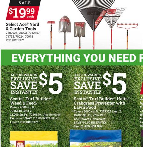HURONHARDWARE ACE OPEN M-F 8-6 • Sat 8-5 • Sun 11-5 WWW.ACEHARDWARE.COM MANY MORE ITEMS ON SALE. COME CHECK US OUT!