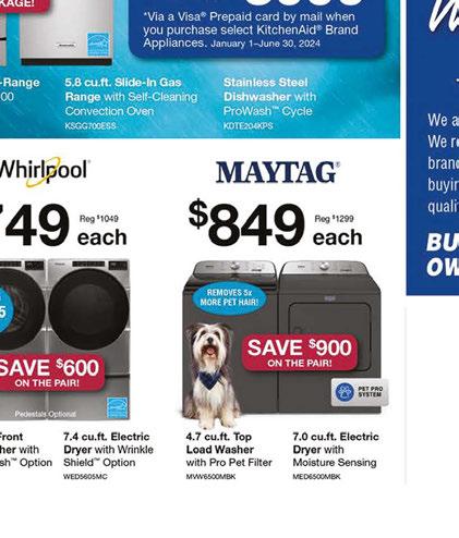 Recycle/Repurpose at the ReStore! Spring cleaning? We’ll pick up your large items for FREE! Call 419-621-2207 Tuesday-Friday 10-5 • Saturday 9-4 419-621-2207 www.firelandshabitat.org 7602 Milan Road • Sandusky Corner of Fox Road, 1/2 mi. S of Kalahari OPEN TO THE PUBLIC 2024 WAREHOUSE IN-STOCK SPECIAL 77 E. Main St. • Norwalk 419-668-4665 Toll Free 1-800-423-1310 “We take pride in what you stand on.” Mon & Fri 8:30-5 Tues-Thurs 8:30-4 Sat 9-Noon “Like us” on Visit our website at www.balduffs.com for all your floor covering and carpet cleaning needs. CARPET CLEANING TILE & GROUT CLEANING UPHOLSTERY CLEANING AIR DUCT CLEANING WHOLE HOUSE DUCT CLEANING $50 OFF Family Owned & Operated Since 1980 Minimum fee of $300.00. Must present coupon to receive this price. Tax not included. Cannot be combined with other discounts. Offer valid for one visit only. Expires 05-16-24. Balduff’s Minumum 2 areas of carpet cleaning. Areas over 250 sq ft of carpet considered a separate area. Must present coupon to receive this price. Tax not included. Cannot be combined with other discounts. Offer valid for one visit only. Expires 05-16-24. Balduff’s ONE ADDITIONAL AREA $1 • Silky Softness. Superior Performance. • Three times more individual fibers than ordinary nylon carpets. • Each strand of SmartStrand Silk carpet is packed with 700 silk-like, stain-resistant fibers. 20% OFF Selected Styles • Carpet • Glue down vinyl planking • Click vinyl planking • Laminant 25% OFF CASH & CARRY