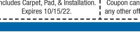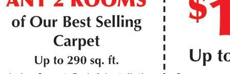 Minumum 2 areas of carpet cleaning. Areas over 250 sq ft of carpet considered a separate area. Must present coupon to receive this price. Tax not included. Cannot be combined with other discounts. Offer valid for one visit only. Expires 10-13-22. Balduff’s ONE ADDITIONAL AREA $1 Minumum 2 areas of carpet cleaning. Areas over 250 sq ft of carpet considered a separate area. Must present coupon to receive this price. Tax not included. Cannot be combined with other discounts. Offer valid for one visit only. Expires 10-13-22. Balduff’s FIVE AREAS & ONE HALLWAY $195 OVER 15,000 SQUARE FEET TO CHOOSE FROM! 2022 WAREHOUSE IN-STOCK SALE “We take pride in what you stand on.” Mon & Fri 8:30-5 Tues-Thurs 8:30-4 Sat 9-Noon “Like us” on Visit our website at www.balduffs.com for all your floor covering and carpet cleaning needs. A Full Service Company Since 1980 • Silky Softness. Superior Performance. • Three times more individual fibers than ordinary nylon carpets. • Each strand of SmartStrand Silk carpet is packed with 700 silk-like, stain-resistant fibers. on Luxury Vinyl Plank Flooring! Glue down and floating flooring available. 77 E. Main St. • Norwalk 419-668-4665 Toll Free 1-800-423-1310 CARPET CLEANING TILE CLEANING FURNITURE CLEANING DUCT CLEANING