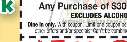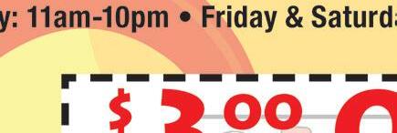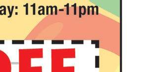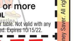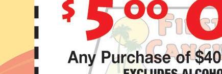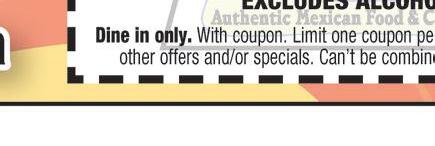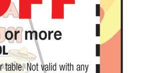 419-433-6017 CARRY OUT & CURBSIDE PICK-UP Family owned and operated 2109 CLEVELAND RD. HURON (Rye Beach Exit) H H H With coupon. One coupon per table. Excludes daily specials & other offers. Expires 10-15-22. With coupon. One coupon per table. Excludes daily specials & other offers. Expires 10-15-22. With coupon. One coupon per table. Excludes daily specials & other offers. Expires 10-15-22. SAVE $2.50 OFF LUNCH Buy 1 lunch at regular price, 2nd is $2.50 off $5.00 OFF Any purchase of $50 or more 419-433-6017 419-433-6017 costaazulhuron.com HAPPY HOUR Sun-Thurs 2-7pm Full Pitcher $15.99 Jumbo Margarita 20oz $6.25 12oz Margarita $4.25 * reg. lime only HOURS Sun-Thurs 11am-9:30pm Fri-Sat 11am-10:30pm SAVE $2.99 OFF DINNER Buy 1 at regular price from menu, 2nd is $2.99 off combo meal Located in Huron Plaza Huron, Ohio 419-616-5281 OPEN Mon-Fri 8am-6pm Sat 8am-4pm 419-616-5281 419-616-5281 Must have coupon at time of purchase. Offers cannot be combined. Expires 10-14-22. Buy a wrap, salad, or panini, get a signature smoothie FREE Must have coupon at time of purchase. Offers cannot be combined. Expires 10-14-22. Buy a wrap, salad, or panini, get a signature smoothie FREE