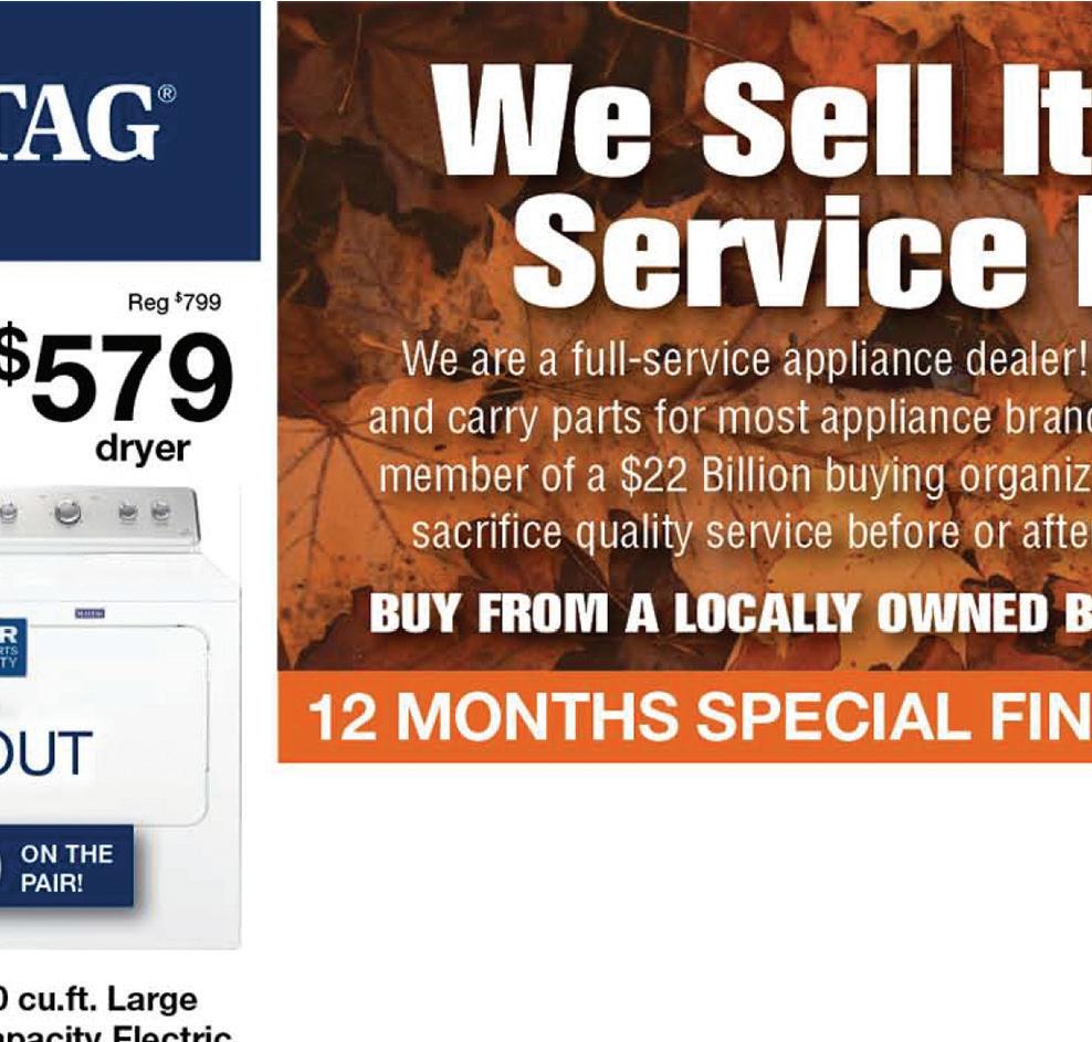 Clearance SALE! “Like” us on Facebook! 419-621-2207 www.firelandshabitat.org 7602 Milan Road • Sandusky Corner of Fox Road, 1/2 mi. S of Kalahari OPEN TO THE PUBLIC We’ll pick up your large items! Call 419-621-2207 OPEN We get new stuff every day, so shop often! 10% OFF any item in the store 50% OFF porch items through 10-13-22 Tuesday-Friday 10-5 Saturday 9-4 EXTRA SAVINGS every Saturday! Huron Outdoor Shop Sawmill Mini Storage and Tool Rental STORAGE UNITS AVAILABLE! We’ll take your trade-in! 1803 Sawmill Parkway Huron, Ohio 44839 419-433-6979 huronoutdoorshop.com • Ask about car & boat storage • Used equipment available • Used walk behind mowers starting at $75 • Chainsaws • Tillers • Generators • Mowers • Motorcycles • ATVs • Trimmers • Firearms WE BUY / SELL TRADE / TRANSFER FIREARMS! One coupon per customer. With coupon. Not valid with any other offer. Expires 10-13-22. 1/2 OFF PICK-UP or DELIVERY STORE YOUR VEHICLE WITH US! CALL FOR SPECIAL RATES. $69.99 (+ parts if needed) SNOW BLOWER SERVICE SPECIAL