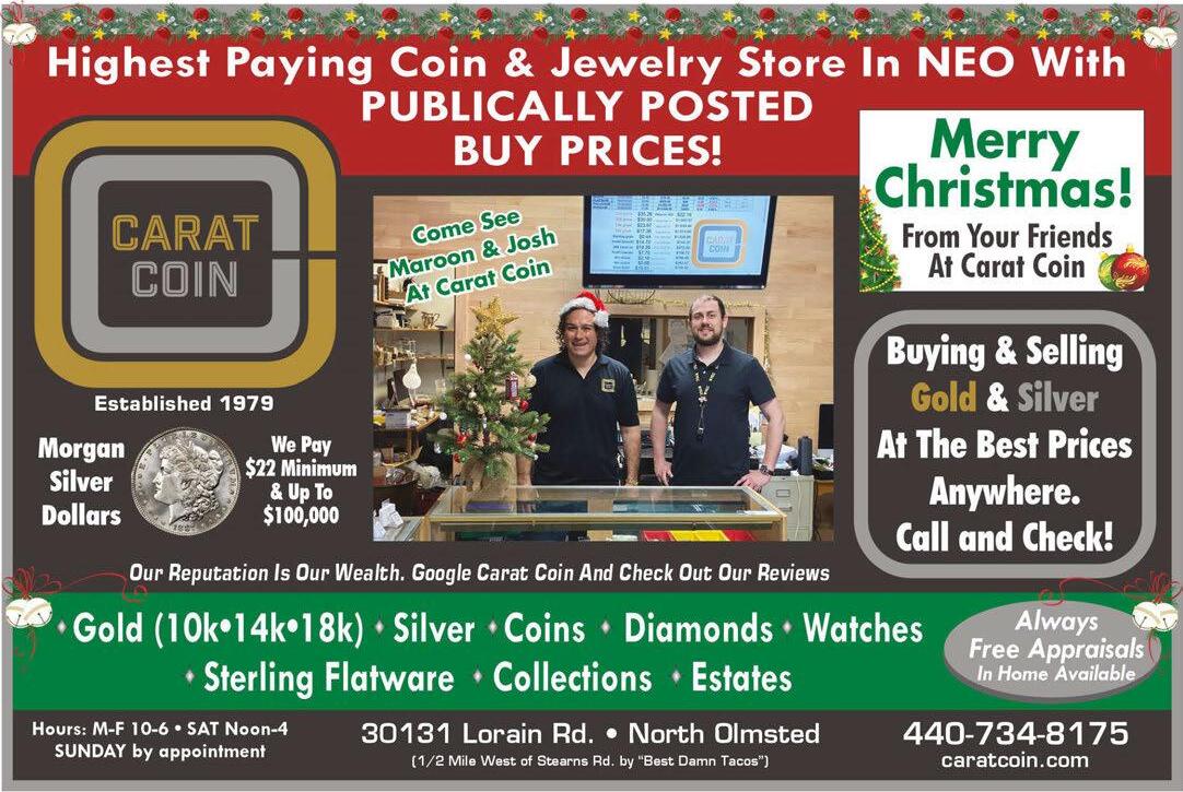 77 E. Main St. • Norwalk 419-668-4665 Toll Free 1-800-423-1310 “We take pride in what you stand on.” Mon & Fri 8:30-5 Tues-Thurs 8:30-4 Sat 9-Noon A Full Service Company Since 1980 “Like us” on Visit our website at www.balduffs.com for all your floor covering and carpet cleaning needs. CARPET CLEANING TILE CLEANING FURNITURE CLEANING DUCT CLEANING Minumum 2 areas of carpet cleaning. Areas over 250 sq ft of carpet considered a separate area. Must present coupon to receive this price. Tax not included. Cannot be combined with other discounts. Offer valid for one visit only. Expires 01-05-23. Balduff’s ONE ADDITIONAL AREA $1 Minumum 2 areas of carpet cleaning. Areas over 250 sq ft of carpet considered a separate area. Must present coupon to receive this price. Tax not included. Cannot be combined with other discounts. Offer valid for one visit only. Expires 01-05-23. Balduff’s FIVE AREAS & ONE HALLWAY $195 • Silky Softness. Superior Performance. • Three times more individual fibers than ordinary nylon carpets. • Each strand of SmartStrand Silk carpet is packed with 700 silk-like, stain-resistant fibers. OVER 15,000 SQUARE FEET TO CHOOSE FROM! 2022 WAREHOUSE IN-STOCK SALE on Luxury Vinyl Plank Flooring! Glue down and floating flooring available. 5273 Whittlesey Ave. • Norwalk, OH • 419-677-1966 KRAMER’S FARM MARKET FULL SERVICE • Tree Shaking • Tree Baling • Tree Drilling • Fresh Cut • All FREE! OHIO-GROWN CHRISTMA CHRISTMAS TREES 3-10 FT Blue Spruce Fraser Fir Scotch Pine FRUIT BASKETS Hey, DIY’ers! Pine Branches Fraser Fir Ceder Juniper Boxwood Holly Cypress Eucalyptus WATCH OUR FACEBOOK PAGE! DEBIT BRING US YOUR CONTAINER TO FILL! HOURS: Mon-Sat 10-6 • Sun 11-5 Custom Made ORDER NOW! Wreaths Centerpieces Crosses Grave Blankets Grave Pillows Cemetery Stone Saddles Other Cemetery Needs Door Swags