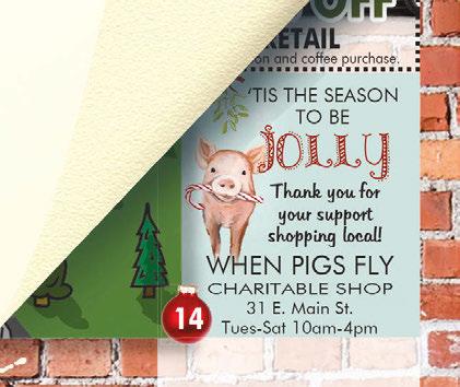 11 12 14 10 13 2 4 5 8 10 14 DORA PARTICIPATING BARS INCLUDE Bluto’s Hometown Tavern Charlie’s Bar • Freight House Glass Bar • Kenilee Lanes Office Bar Follow us on Facebook! 24/7 Christian Family Store 36 Eleven (home décor, goods, DIY paints) Arter Home Furnishings Artists Open Studio Balduff’s Carpet BeStrong Uniforms Belleza Bluto’s Hometown Tavern Charlie’s Bar Christian Roberts Salon Collector’s Hangout Creamettes Imporium (antiques) Diamond Collection Excel Bike & Fitness For Their Future Freight House Glass Bar Pub Hill’s Interiors Historical Society Museum Ivy (resale shop) Kenilee Lanes (bowling) La Guadalupana (Mexican grocer) Main Street Café New Direction Design (custom clothing) Norwalk Fabric Outlet Norwalk Library Office Bar Painted Cowgirl Peking House Rupp’s Place Sears Sherri’s Coffee House When Pigs Fly (charitable home décor) 33 Seminary St. 419-668-8862 50% OFF ONE APPETIZER With coupon. 20% OFF RETAIL With coupon and coffee purchase. SHERI’S COFFEE SHOP ‘TIS THE SEASON TO BE WHEN PIGS FLY CHARITABLE SHOP 31 E. Main St. Tues-Sat 10am-4pm Thank you for your support shopping local! 11 West Main St. Downtown Norwalk In a world where you can shop anywhere... SHOP LOCAL!