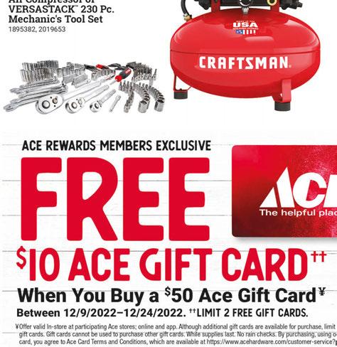 111 Whittlesey Avenue Norwalk • 419-668-4223 NORWALKHARDWARE ACE M-F 8-7 • Sat 8-5 • Sun 10-5 SHOP ONLINE at WWW.ACEHARDWARE.COM MANY MORE ITEMS ARE ON SALE ...COME CHECK US OUT!