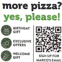 Mon & Fri 8:30-5 Tues-Thurs 8:30-4 Sat 9-Noon “Like us” on Visit our website at www.balduffs.com for all your floor covering and carpet cleaning needs. Minumum 2 areas of carpet cleaning. Areas over 250 sq ft of carpet considered a separate area. Must present coupon to receive this price. Tax not included. Cannot be combined with other discounts. Offer valid for one visit only. Expires 08-03-23. Balduff’s ONE ADDITIONAL AREA $1 77 E. Main St. • Norwalk 419-668-4665 Toll Free 1-800-423-1310 CARPET CLEANING TILE CLEANING FURNITURE CLEANING DUCT CLEANING CARPET CLEANING $199 Must present coupon to receive this price. Tax not included. Areas over 250 sq ft of carpet considered a separate area. Tax not included. Cannot be combined with other discounts. Offer valid for one visit only. Expires 08-03-23. Balduff’s FIVE AREAS & A HALL “We take pride in what you stand on.” MOHAWK 2023 NATIONAL WAREHOUSE SPECIAL ON NOW! • CARPET 3000 yards2 starting at 99¢/sq. ft. • LUXURY PLANK FLOORING Over 15,000 square feet of glue down and floating available, starting at $1.25/sq. ft. • 10mm Laminate in stock starting at $2.85/sq. ft. All Pet is the ONLY CARPET PROTECTION & WARRANTY for all pets, all accidents, all the time! DAILY SPECIALS AVAILABLE IN OUR DINING ROOM Pizza • Salads • Subs • Sandwiches • Appetizers • Dinners VISA • MASTERCARD DISCOVER 2221/2 E. Main Street Norwalk, Ohio 419-668-8385 PIZZA POST Family Restaurant Dine-In • Carry-Out • Delivery DELIVERY CHARGE Not valid with any other offer. Exp. 08-03-23. Dine-In • Carry-Out • Delivery DELIVERY CHARGE Not valid with any other offer. Exp. 08-03-23. Dine-In • Carry-Out • Delivery DELIVERY CHARGE Not valid with any other offer. Exp. 08-03-23. Dine-In • Carry-Out • Delivery DELIVERY CHARGE Not valid with any other offer. Exp. 08-03-23. Dine-In • Carry-Out • Delivery DELIVERY CHARGE Not valid with any other offer. Exp. 08-03-23. $2.00 OFF ANY FAMILY SIZE PIZZA $1.00 OFF ANY LARGE PIZZA 2 HAM CHEF SALADS or 2 TURKEY CHEF SALADS $13.50 1 MEDIUM 1-ITEM PIZZA $11.75 1 FAMILY SIZE 1-ITEM PIZZA AND 1 ORDER OF BREAD TWISTS $21.50 HOME OF THE PIT PIE 1 SMALL 1-ITEM PIT PIE $9.65 EXTRA DRESSING 50¢ EACH EXCLUDES EXTRA CHEESE $2.50 EXCLUDES EXTRA CHEESE ADD RANCH 65¢ EXCLUDES EXTRA CHEESE