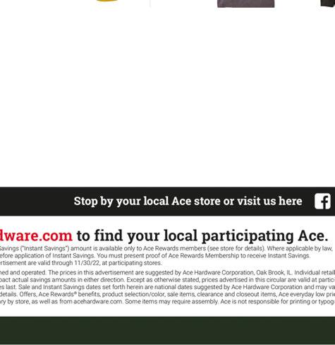 BUY ONLINE AND PICK UP FOR FREE! 111 Whittlesey Avenue Norwalk • 419-668-4223 NORWALKHARDWARE ACE HOURS: M-F 8-7 • Sat 8-5 • Sun 10-5 SHOP ONLINE at WWW.ACEHARDWARE.COM
