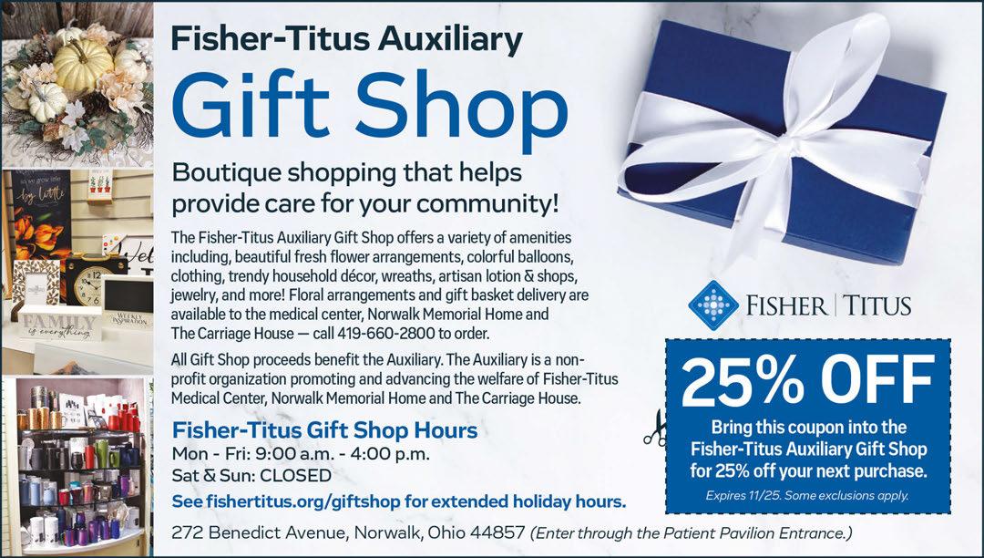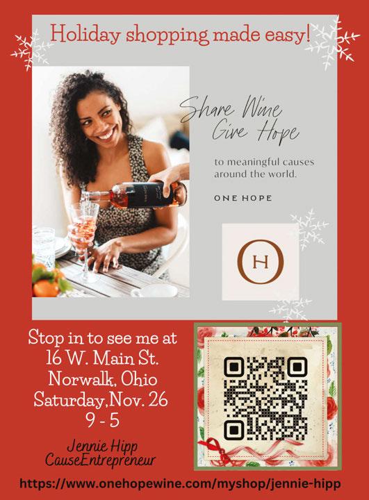 15 Whittlesey Avenue • Norwalk, OH 419-668-4402 www.battlesinsurance.com Chip Battles Co-owner Perry Dryden Co-owner THE Medicare Annual Election Period RUNS FROM OCTOBER 15-DECEMBER 7 With over 15 different providers, plans are always tailored specific to your needs! Call to schedule your appointment today. Not affiliated with Medicare or any Federal Program. We do not offer every plan available in your area. Any information we provide is limited to those plans we do offer in your area. Please contact Medicare.gov or 1-800-Medicare to get information on all your options. FIRST LOCATION IN NORTHERN OHIO 18 S. MAIN • MONROEVILLE 419-465-6007 OPEN Tues-Fri 11-6 • Saturday 9-4 CLOSED Sun & Mon UNIQUELY DIFFERENT DRESSES • SWEATERS • JEANS • HATS • HANDBAGS • CUSTOM MADE JEWELRY • ALL SIZES • GREAT PRICES SHOP MONROEVILLE November 4 11am-6pm • November 5 9am-4pm DOOR BUSTER! Select cardigans $30/ea. “Last One Of” Rack 25% OFF SHOP SMALL SATURDAY November 26 9am-4pm CALL FOR SPECIALS! LOTS OF GIFT IDEAS!