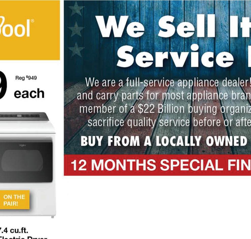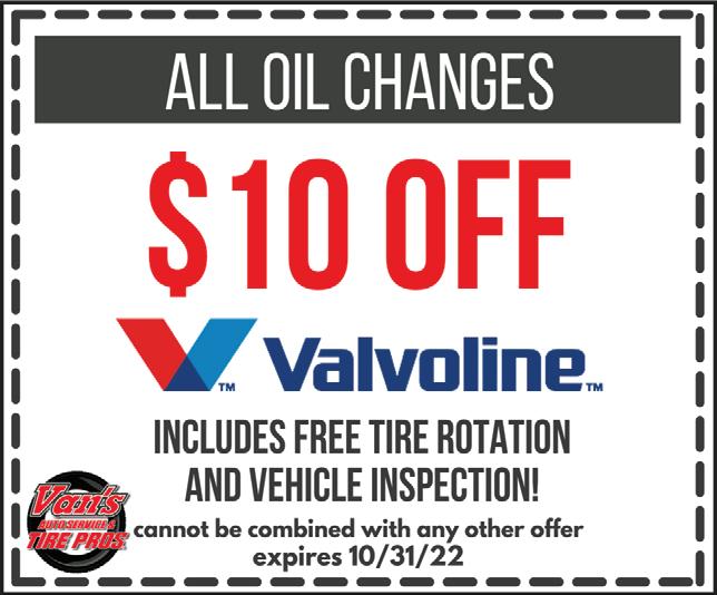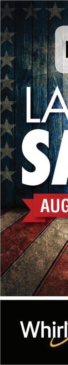 60 E. Main St. • Norwalk, OH 419-668-0262 LOCALLY OWNED & OPERATED searshometownstores.com Mon-Sat 9-6 Sunday 11-4 END OF SUMMER/ LABOR DAY SALE STARTING AUGUST 28 THROUGH SEPTEMBER 14 UP TO 30% OFF SELECT APPLIANCES PLUS 10% OFF SELECT IN-STORE APPLIANCES UP TO 40% OFF GRILLS & ACCESSORIES 18 MONTH FINANCING AVAILABLE! 50% OFF MATTRESS & FOUNDATI0N SETS 567-743-9392 567-743-9392 Carryout or dine-in. Excludes alcohol. With coupon. Cannot be combined with any other coupon or offer. One coupon per customer per visit. Expires 09-29-22. $5 OFF DAILY LUNCH SPECIALS Available Monday-Friday 11am-4pm ONLY $8.99 EACH DINE-IN or CARRYOUT Buffalo Chicken Wrap • Grilled Chicken Salad Grilled Cheese & Soup or Salad Taco Salad • BBQ Pulled Pork Sandwich Grilled Ham & Cheese DAILY SPECIALS DINE-IN ONLY Monday: $2.50 Tacos & $2.50 Margaritas ALL DAY! Tuesday: Trivia with Food & Drink Specials Thursday: $11.99 Fowl Ball Platter, plus $3.50 Tall Domestic Drafts ALL DAY! Friday: $4.99 Long Island & $16.99 Fish and Shrimp Special ALL DAY! Saturday: 4-16 oz. Domestic Beers on Ice for $11.99 ALL DAY! Enjoy with our Burger of the Month! Sunday: 4-16 oz. Domestic Beers on Ice for $11.99, $4 Bloody Marys, and $11.99 Fowl Ball Platter ALL DAY! 230 Milan Avenue • Norwalk, Ohio 567-743-9392 OPEN: Sun-Thurs ‘til 10pm; Fri & Sat ‘til 11pm Carryout or dine-in. With coupon. Cannot be combined with any other coupon or offer. One coupon per customer per visit. Expires 09-29-22. purchase of $30 or more only $7.99 Any Lunch Special SIDELINESSPORTSEATERY.COM NOW HIRING GENERAL MANAGER N N