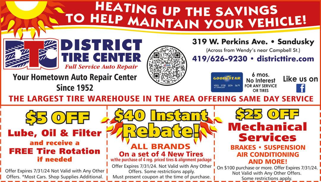 OPEN Tues-Fri 11-6 Saturday 9-4 CLOSED Sun & Mon FIRST LOCATION IN NORTHERN OHIO 120 E. MAIN ST. • BELLEVUE 567-267-9009 UNIQUELY DIFFERENT DRESSES • SWEATERS • JEANS • HATS • HANDBAGS • CUSTOM MADE JEWELRY • ALL SIZES • GREAT PRICES JULY 4th SALE! ★ ★ ★ JUNE 28th & JUNE 29th ★ ★ ★ COME CHECK OUT OUR SPECIALS! LOTS OF VACATION ITEMS! Dresses • Jumpers Summer Sweaters • Graphic Ts Lightweight Sweatshirts • More! On the Corner of Perkins & Columbus Avenues for veterans and seniors • 10% OFF $39.99 FULL SYNTHETIC OIL CHANGE Most vehicles. With coupon. Expires 07-15-24. Cole’s • 419-627-6730Cole’s • 419-627-6730 Cole’s • 419-627-6730Cole’s • 419-627-6730 With coupon. Expires 07-15-24. BRAKE SPECIAL Replace brake pads, turn rotors, single axle, front or rear. Cars $89.99 Trucks $109.99 With coupon. Expires 07-15-24. DIAGNOSTICS “Check Engine” light on? Get it checked for FREE A/C SERVICE plus FULL SYNTHETIC OIL CHANGE $169.99 419-627-6730 Most vehicles. With coupon. Expires 07-15-24. diagnostic! FREE JOIN OUR TEAM! 2 CAN DINE FOR $9.99 Includes 2 Classic Beef Sandwiches, 2 Medium Fries, and 2 Medium Soft Drinks SANDUSKY LOCATION ONLY. Buy up to 3 deals per visit with this coupon. Not valid with any other offer, discount, or coupon, and non-transferrable. Third party marks are the property of their respective owners. Not valid with delivery or online ordering. Expires 07-12-24. SANDUSKY LOCATION ONLY. Buy up to 3 per visit with this coupon. Not valid with any other offer, discount, or coupon, and non-transferrable. Third party marks are the property of their respective owners. Not valid with delivery or online ordering. Expires 07-12-24. SANDUSKY LOCATION ONLY. Buy up to 3 deals per visit with this coupon. Not valid with any other offer, discount, or coupon, and non-transferrable. Third party marks are the property of their respective owners. Not valid with delivery or online ordering. Expires 07-12-24. 4-PIECE MOZZARELLA STICKS —or— 5-PIECE JALAPENO BITES $2.49 REUBEN SANDWICH $4.99 Apply today at Sandusky Arby’s Call 419-502-1216