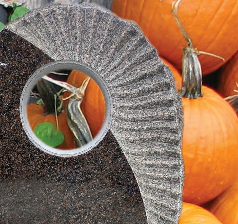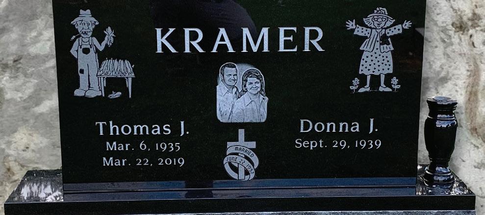 Located at 39 Woodlawn Ave. Norwalk, Ohio www.franklinmonument.com • Visit us on Facebook! We spend our days harvesting memories. Let us honor yours with lasting reminders! • Etchings • Benches • Financing • Large color selection • In-home consultations • Large showroom • Handicap accessible OPEN M-Th 9-5, Fri 9-3:30, Saturdays & evenings by appointment 419-663-7866 Visit our website for ideas, and know that we can create something unique to honor and remember. See our selection of above-ground columbariums! Concrete garden art is a specialty! Add to your outdoor décor, or choose something special to honor a loved one. FREE Pumpkin Spice Latté with any $50 purchase in the month of October RESTRICTIONS APPLY. With coupon. Offer expires 10-31-22.