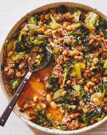 In a large stockpot or Dutch oven set over medium-low heat, sauté the onion in the olive oil until tender. Add the carrot, celery and garlic, cook for 1-2 more min. Add the sausage and brown, braking it into bits as it cooks. Add tomato paste and cook for 1-2 min. Add the chopped ham (optional), chicken broth, vinegar and bring the soup to a boil. Pour in the lentils along with the remaining seasonings/spices and reduce heat to a simmer. Cook until the lentils are tender, and liquid reduces, 40-45 min. Stir in escarole (if using) and cook until tender, about 3 min. Stir in vinegar to taste and season with salt and pepper. Discard bay leaf.