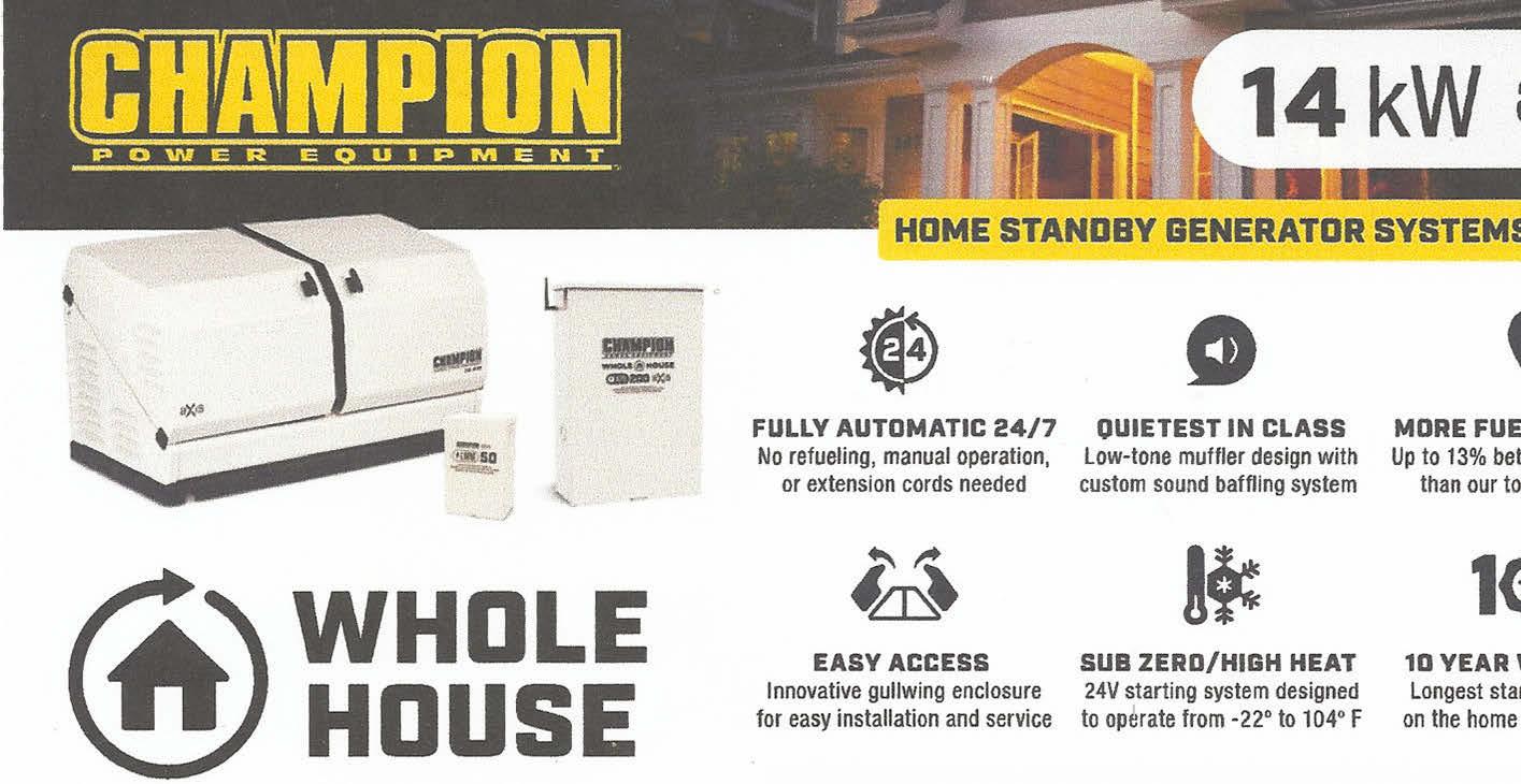 Save More Time! Save More Money! allsetmarine@roadrunner.com WHOLE HOUSE 14kW aXis GENERATOR $4699 ONLY Plus $250 shipping. Plus installation. Call for an estimate! • Digital controls • New SEATS family and advanced power management • New wireless communication 8444 W. State Rte. 163 Oak Harbor, OH 43449 419-898-2089 www.co.ottawa.oh.us/veterans We assist with ★ VA claims ★ Financial assistance ★ Transportation ★ Other possible bene ts Free of charge!