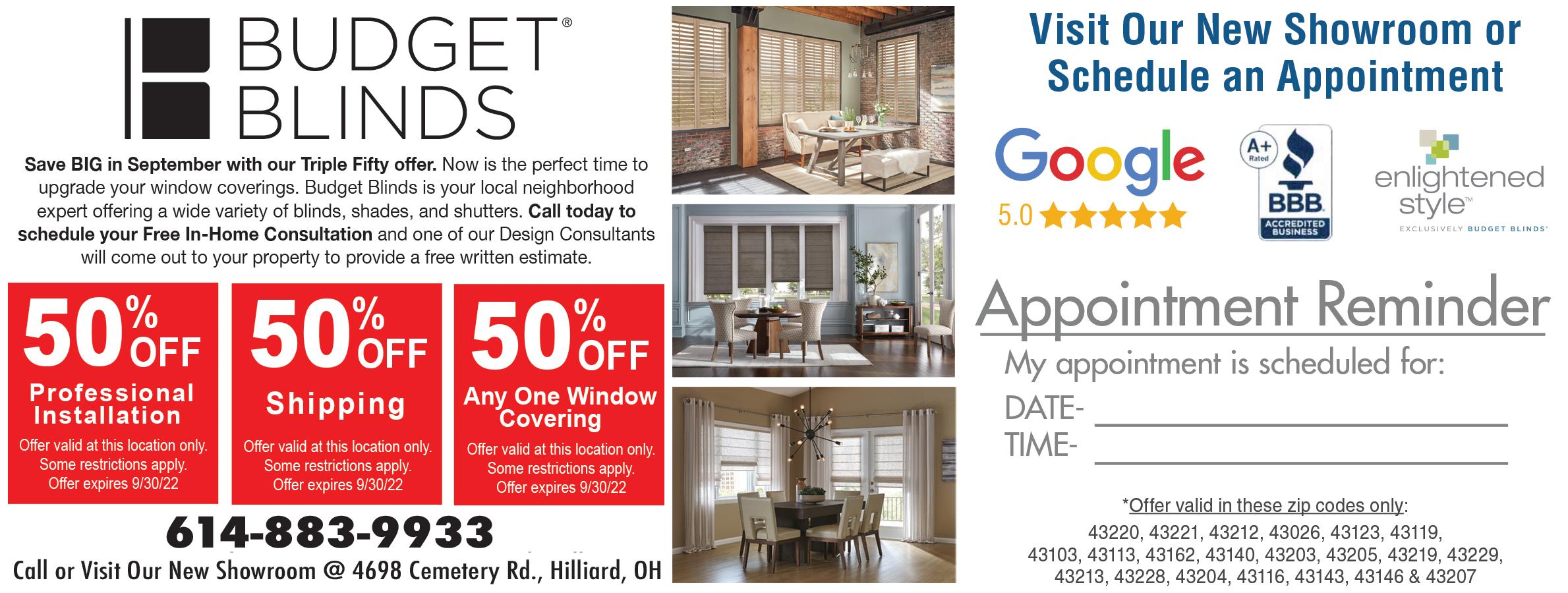 HILLIARD Published By Town Money Saver, Inc. Corporate Office • PO Box 356 • Lucas, OH 44843 © 2022 TMS Franchising, Inc. All rights reserved. For advertising information, call Jon 614-401-0139 NEXT ISSUE IN HOMES: September 29, 2022 ADVERTISING DEADLINE: September 14, 2022 PRSRT STD ECRWSS U.S. POSTAGE PAID Town Money Saver, Inc. townmoneysaver.com 3708 Fishinger Blvd • Hilliard • 614-335-9864 Get coupons/deals online at... GetAirColumbus.com BACK 2 SCHOOL GOT YOU DOWN? $50 OFF YOUR NEXT PARTY WHEN YOU BOOK A PARTY WITH 10 OR MORE JUMPERS With coupon. Not valid with other o ers. Not valid on holidays and school holidays. Limited to ONE per household. One time use. Valid for one party only, please. Expires 9/30/2022 $5 OFF 2 HOUR JUMP PASS (LIMIT 4 GUESTS PER COUPON) With coupon. Not valid with other o ers. Not valid on holidays and school holidays. Limited to ONE per household. One time use. Valid for one person only, please. Expires 9/30/2022 50% OFF GENERAL ADMISSION (MONDAY – WEDNESDAY ONLY) With coupon. Not valid with other o ers. Not valid on holidays and school holidays. Limited to ONE per household. One time use. Valid for one person only, please. Expires 9/30/2022 50% OFF GENERAL ADMISSION (MONDAY – WEDNESDAY ONLY) With coupon. Not valid with other o ers. Not valid on holidays and school holidays. Limited to ONE per household. One time use. Valid for one person only, please. Expires 9/30/2022 VISIT US ONLINE! TRAMPOLINES 3 FOAM PITS NINJA COURSE DODGE BALL TODDLER AREA PARTY ROOMS ONLINE NOW! • Best cheesesteaks and subs in town • Plenty of big screen TV’s • Great daily drink specials • Kitchen open late night • Family-friendly environment submarinehouse.com I 614.541.9411 KIDS EAT FREE FROM 4-8PM DAILY DINE-IN ONLY SEE STORE FOR DETAILS The Hilliard Submarine House is located at 2459 Hilliard-Rome Road in the Kroger Shopping Center SAVE $3 on a purchase of $15 or more Valid for food only. Maximum value of coupon is $3.00. Not valid with any other o er or daily specials. One coupon per visit. Expires 9/30/22 Coupon valid only at our Hilliard location. TMS SAVE $5 on a purchase of $25 or more Valid for food only. Maximum value of coupon is $3.00. Not valid with any other o er or daily specials. One coupon per visit. Expires 9/30/22 Coupon valid only at our Hilliard location. TMS TUES MUSIC TRIVIA 7PM | WED TRIVIA 7PM | THURS SINGO 6:30PM 614.883.9933 4698 Cemetery Rd. Hilliard OH OUR TRIPLE FIFTY OFFER IS HERE! SAVE BIG IN SEPTEMBER! Call or Visit Our New Showroom at 4698 Cemetery Rd., Hilliard, OH