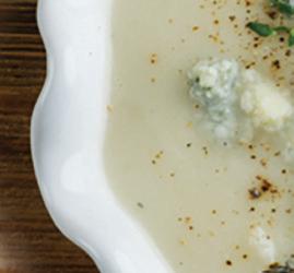 Garnish: Crumbled Stilton & steamed cauli ower orets