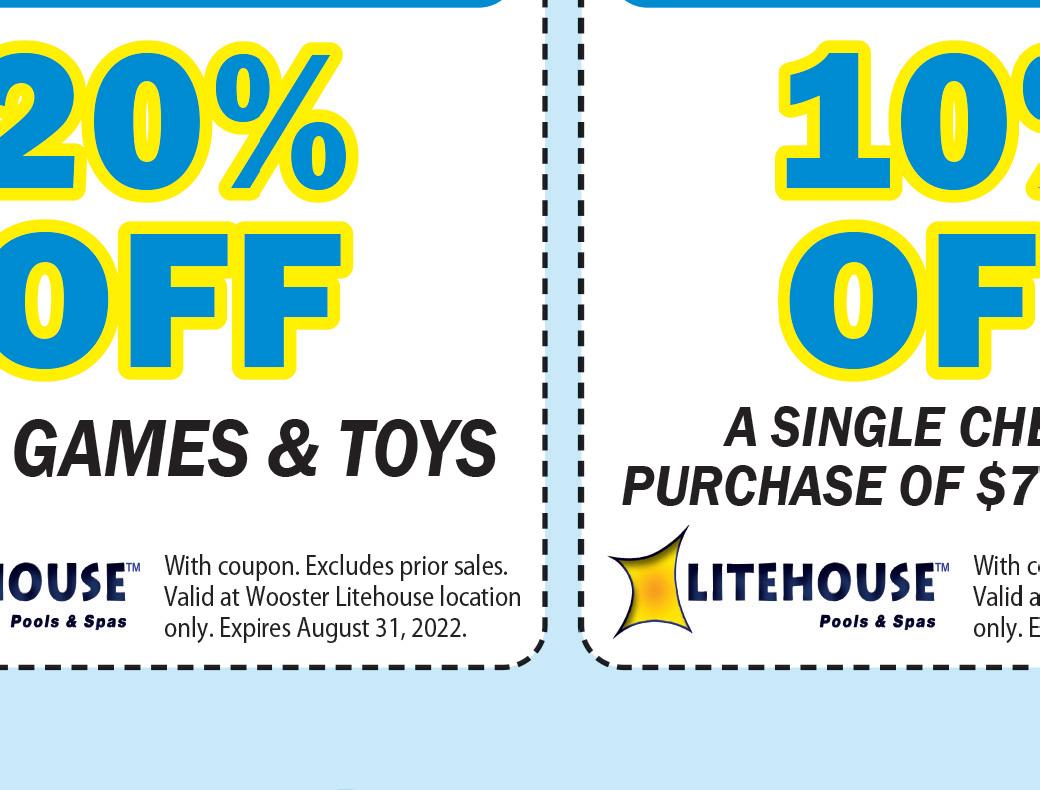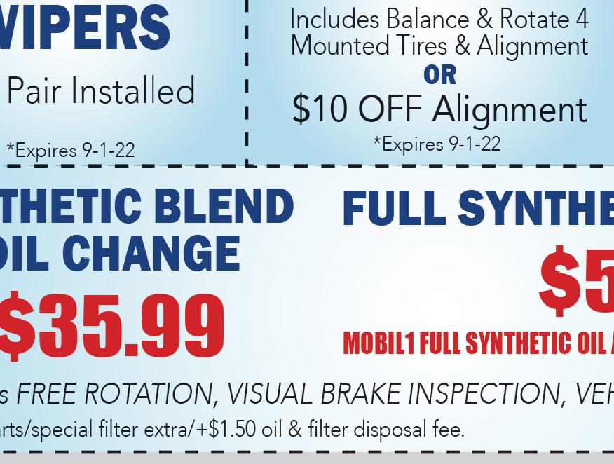 EXTERIOR HOUSE WASH . ONLY $299 CALL THOMAS TODAY FOR A FREE ESTIMATE! 330.465.5089 Homes up to 1500 sq. ft. Larger homes extra Authentic Mexican Food 3860 Cleveland Rd. • WOOSTER (just south of Pallotta Ford) 330-601-1100 To See our Menu visit: www.eltapatiowooster.com Open from Monday-Thursday 11am-9pm • Friday 11am-9:30pm • Saturday 12pm-9:30pm • Sunday 11am-8:30pm Valid EVERYDAY $2 OFF Valid EVERYDAY Valid EVERYDAY $5 OFF FAMILY PACK FAJITA DINNER (Feeds 4) Chicken $29.99 Steak $39.99 Shrimp $39.99 Includes Rice & Beans, Tortilla, Side of Lettuce & Cream, 2 Large Chips & Large Salsa valid with other offers. Expires 3/31/22 $40 GetCards Sale is $3 OFF Any Lunch Purchase of $15 or More Any Food Purchase of $25 or More Any Food Purchase of $35 or More Authentic Mexican Food 3860 Cleveland Rd. • WOOSTER (just south of Pallotta Ford) 330-601-1100 To See our Menu visit: www.eltapatiowooster.com Open from Monday-Thursday 11am-9pm • Friday 11am-10pm • Saturday 12pm-10pm • Sunday 11am-8:30pm MOST TAKE OUT ORDERS READY IN 10 MINUTES OR LESS! One coupon per party. Not valid with other offers. Expires 9/1/22 One coupon per party. Not valid with other offers. Expires 9/1/22 One coupon per party. Not valid with other offers. Expires 9/1/22 Authentic Mexican Food 3860 Cleveland Rd. • WOOSTER (just south of Pallotta Ford) 330-601-1100 To See our Menu visit: www.eltapatiowooster.com Open from Monday-Thursday 11am-9pm • Friday 11am-10pm • Saturday 12pm-10pm • Sunday 11am-8:30pm UNEEDA TIRE COMPANY WE DO AUTO REPAIR NEW TIRES $20 ABOVE COST INSTALLED USED TIRES $25 & UP 100’S IN STOCK Auto Repair - We Let You Buy the Parts! You Only Pay Our Labor! Who Does That (NOBODY) UNEEDA TIRE DOES! MENTION THIS AD FOR 5% OFF YOUR TOTAL BILL GOOD FOREVER!!! 6140 Doyelstown Rd. Seville 330-722-6483 5% OFF 5% OFF 5% OFF 5% OFF