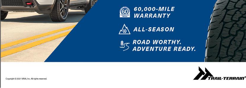 185/65R15 195/60R15 195/60R15 195/65R15 215/70R15 235/75R15 205/55R16 205/55R16 205/60R16 205/65R16 205/70R16 215/55R16 215/60R16 215/60R16 215/65R16 225/60R16 225/65R16 235/70R16 LT245/75R16 215/55R17 215/60R17 225/50R17 225/55R17 225/60R17 225/65R17 225/65R17 225/65R17 235/50R17 65K 55K 50K 55K 50K 50K 55K 50K 55K 65K 70K 55K 55K 65K 65K 55K 65K 55K 50K 55K 65K 65K 55K 55K 55K 65K 80K 40K $65 $70 $80 $70 $75 $85 $85 $95 $80 $95 $100 $95 $90 $100 $95 $90 $100 $110 $150 $95 $115 $110 $100 $95 $100 $125 $135 $100 55K 55K 50K 50K 60K 55K 50K 50K 50K 65K 55K 50K 50K 70K 50K 50K 60K 60K 60K 50K 50K 70K 50K 55K 70K 55K 60K 50K $100 $120 $140 $125 $150 $125 $110 $125 $115 $120 $130 $125 $130 $150 $150 $150 $170 $185 $175 $200 $135 $150 $185 $150 $175 $160 $170 $165 Tire Size Brand Mileage Price Each* Tire Size Mileage Price Each* *Prices are per tire and does not include installation These pric 31/22 **Plus taxes & fees FFREE REE LLOANERS! OANERS! (Subject to Availability) (Subject to Availability) CHECK US OUT T ONE OF OUR 12 CON ENIENT LOC TIONS! CHECK US OUT AT ONE OF OUR 12 CONVENIENT LOCATIONS!