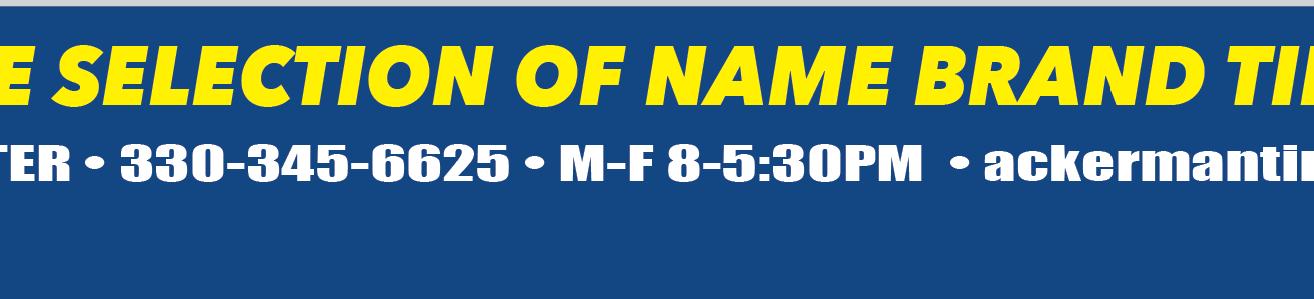 AKRON 330-724-7400 449 E WATERLOO RD CUYAHOGA FALLS 330-794-5263 4005 STATE RD MEDINA 330-239-2371 1451 MEDINA RD AKRON 330-784-5454 1725 E Market WOOSTER 330-262-6800 210 S BUCKEYE ST ELLET 330-784-7740 682 CANTON RD MANSFIELD 419-529-0865 801 LEXINGTON AVE NORWALK 419-677-0655 2874 STATE RT 61 WADSWORTH 330-336-6630 185 BROAD ST N RIDGEVILLE 440-327-7010 37775 CENTER RIDGE RD PARMA 440-663-3600 7701 DAY DRIVE IBERIA 419-468-1777 3596 STATE RT 309 235/55R17 235/65R17 245/65R17 265/70R17 265/70R17 225/55R18 225/60R18 235/45R18 235/50R18 235/55R18 235/60R18 235/65R18 245/60R18 255/65R18 255/70R18 265/60R18 265/65R18 265/65R18 275/65R18 275/70R18 225/55R19 235/40R19 265/50R20 275/55R20 275/55R20 275/60R20 275/60R20 285/45R22