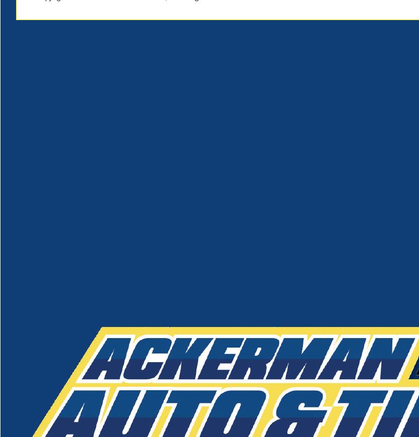 UNEEDA TIRE COMPANY WE DO AUTO REPAIR NEW TIRES $20 ABOVE COST INSTALLED USED TIRES $25 & UP 100’S IN STOCK Auto Repair - We Let You Buy the Parts! You Only Pay Our Labor! Who Does That (NOBODY) UNEEDA TIRE DOES! MENTION THIS AD FOR 5% OFF YOUR TOTAL BILL GOOD FOREVER!!! 6140 Doylestown Rd. Seville 330-722-6483 5% OFF 5% OFF 5% OFF 5% OFF KEEPING YOUR WATER FLOWING SINCE 1998 24/7 PLUMBING SERVICE! www.prestige.plumbing Prestige Plumbing, LLC Prestige Plumbing, LLC $ 25 OFF Any Performed Service Must present coupon. One coupon per person. Not valid with other o ers. GOOD FOR 2022 State Licensed Plumbing Company #14153 Wayne County 330-828-8888 Stark County 330-837-7777 Family Owned & Operated
