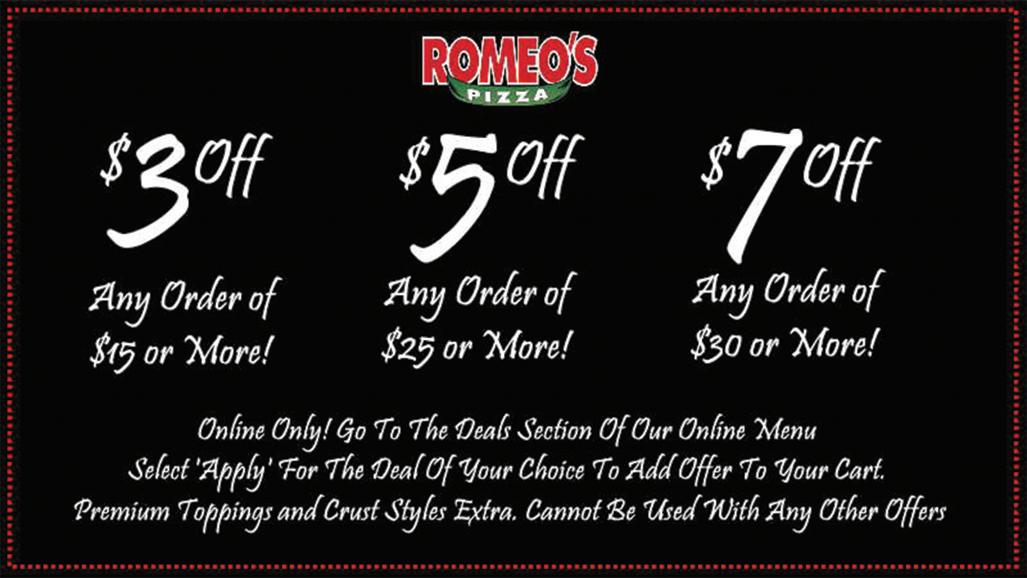 Authentic Mexican Food 3860 Cleveland Rd. • WOOSTER (just south of Pallotta Ford) 330-601-1100 To See our Menu visit: www.eltapatiowooster.com Open from Monday-Thursday 11am-9pm • Friday 11am-9:30pm • Saturday 12pm-9:30pm • Sunday 11am-8:30pm Valid EVERYDAY $2 OFF Valid EVERYDAY Valid EVERYDAY $5 OFF FAMILY PACK FAJITA DINNER (Feeds 4) Chicken $29.99 Steak $39.99 Shrimp $39.99 Includes Rice & Beans, Tortilla, Side of Lettuce & Cream, 2 Large Chips & Large Salsa valid with other offers. Expires 3/31/22 $40 GetCards Sale is $3 OFF Any Lunch Purchase of $15 or More Any Food Purchase of $25 or More Any Food Purchase of $35 or More Authentic Mexican Food 3860 Cleveland Rd. • WOOSTER (just south of Pallotta Ford) 330-601-1100 To See our Menu visit: www.eltapatiowooster.com Open from Monday-Thursday 11am-9pm • Friday 11am-10pm • Saturday 12pm-10pm • Sunday 11am-8:30pm MOST TAKE OUT ORDERS READY IN 10 MINUTES OR LESS! One coupon per party. Not valid with other offers. Expires 10-31-22 One coupon per party. Not valid with other offers. Expires 10-31-22 One coupon per party. Not valid with other offers. Expires 10-31-22 Authentic Mexican Food 3860 Cleveland Rd. • WOOSTER (just south of Pallotta Ford) 330-601-1100 To See our Menu visit: www.eltapatiowooster.com Open from Monday-Thursday 11am-9pm • Friday 11am-10pm • Saturday 12pm-10pm • Sunday 11am-8:30pm