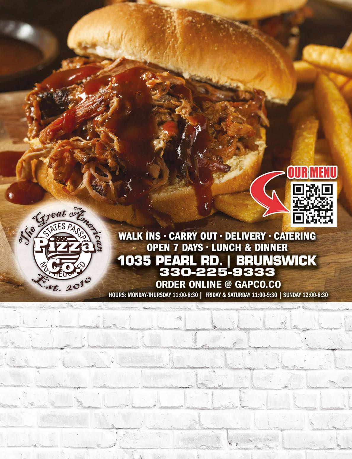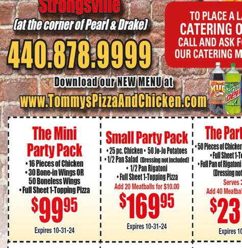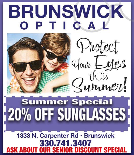 Call Laura to Advertise, 330.350.2089 • Next Issue In-Homes, July 11th • Deadline June 21st A Chicken with Broccoli Pork Lo Mein Pork Fried Rice B Beef with Broccoli Chicken Lo Mein Pork Fried Rice C Pepper Steak Onion Sweet & Sour Chicken Pork Fried Rice D General Tso’s Chicken Chicken Chow Mein Pork Fried Rice E Sesame Chicken Chicken with Broccoli Pork Fried Rice F Hunan Chicken Sweet & Sour Chicken Pork Fried Rice G Chicken with Garlic Sauce Chicken Lo Mein Pork Fried Rice H Sweet & Sour Chicken General Tso’s Chicken Pork Fried Rice FOOD KING SPECIALS - $9.99 Purchase Over $30 FREE 2 Liter Soda with cash payments only Valid with coupon. Not valid with any other offer. Valid with coupon. Not valid with any other offer. Purchase Over $45 FREE 1 Order Crab Rangoon with cash payments only Online Menu & Ordering: www.FoodKingmenu.com Chinese Food Dine-In or Take Out We Use 100% Vegetable Oil MSG Purchase Over $15 10% OFF with cash payments only Valid with coupon. Not valid with any other offer. Delivery (min $15) 1733 Pearl Rd. (Laurel Sq. Plaza) 330-558-0688 • 330-273-5368 Hrs: M - Thur 11am-9:30pm • Fri & Sat 11am-10:30pm • Sun Noon-9:30pm COUPONS AVAILABLE ONLINE Delivery Availble Servicing Brunswick for Over 15 Years! Servicing All Makes & Models 2149 Pearl Road Brunswick 330-998-2209 onthespotheatingandcooling@gmail.com 24/7 Emergency Service Available FREE ESTIMATES | LICENSED | INSURED | BONDED DURING NORMAL BUSINESS HOURS Must present TMS coupon at time of estimate. Not valid with any other offers. Expires 7/15/24. Must present TMS coupon at time of estimate. Not valid with any other offers. Expires 7/15/24. FINANCING AVAILABLE! NOW SERVICING HOT WATER TANKS FREE Service Call with Repair of $180 or more DURING NORMAL BUSINESS HOURS NEW CUSTOMERS ONLY! $59 Clean & Check Air Conditioner Excludes Commercial Equipment