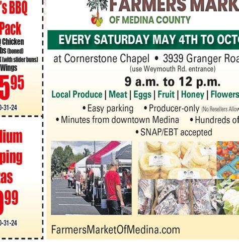 HealthMarkets Insurance Agency Health | Medicare | Small Group | Life | Supplemental 330-225-2550 roni.bell@healthmarkets.com HealthMarkets Insurance Agency, Inc. is licensed in all states. Service and product availability varies. Agents may be compensated based on enrollment. No obligation to enroll. ©2023 HealthMarketes With hundreds of plans from nationally recognized companies and our personal service, finding the right health plan that fits your budget has never been easier. Roni Bell Licensed Insurance Agent WACKY WEDNESDAY CHICKEN SPECIAL 8 Pc Chicken, & Coleslaw $16.99 CALL AHEAD FOR CHICKEN ORDERS Make Your Own 6 Packs 440-268-9701 Fax: 440-268-9702 With coupon only. Not valid with any other offers or specials. One coupon per visit. Expires 7/11/24 12 PC CHICKEN 12 LARGE JOJO’S & 1 LB COLESLAW $24.99 CALL AHEAD FOR CHICKEN ORDERS ORDER A GRADUATION CATERING TRAY TODAY! MINI SANDWICH TRAYS CROISSANT TRAYS, MEAT TRAYS 4 FT SUB & MORE! One coupon per person. With coupon only. Not valid with any other offers or specials. One coupon per visit. Expires 7/11/24 $5.00 OFF ANY PARTY PLATTER (CHICKEN, SUB, CROISSANT, MEAT) $50 OR MORE I Scream, You Scream, We All Scream for ICE CREAM! BUY A SMALL HAND DIPPED ICE CREAM GET ONE FREE (Equal Value) With coupon only. Not valid with any other offers or specials. One coupon per visit. Expires 7/11/24 Open 4th of July by placing an ad with in Town Money Saver. Contact Laura to get started. 330.350.2089 lgrozan@townmoneysaver.com SAVE THE ADVERTISE TODAY! Local advertising made easy.