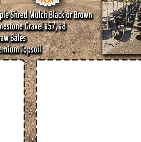 FREE DELIVERY FOR MATERIAL OVER 3 YARDS UP TO 10 MILE RADIUS OFFERS NOT VALID FOR ANY CONTRACTOR PRICING. NOT VALID WITH ANY OTHER OFFER. MUST MENTION COUPON TO RECEIVE DISCOUNT. EXPIRES 7/11/24. COUPON CODE: FREESHIP3 TRIPLE SHRED MULCH SALE 15% OFF DYED BLACK OR BROWN (NORMALLY $43/YD) OFFERS NOT VALID FOR ANY CONTRACTOR PRICING. NOT VALID WITH ANY OTHER OFFER. MUST MENTION COUPON TO RECEIVE DISCOUNT. EXPIRES 7/11/24. COUPON CODE: TRIPLE15