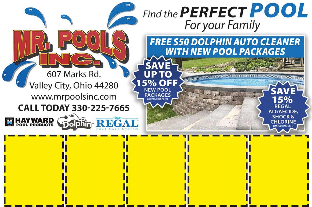 Valid Sunday - Thursday. Valid with coupon. Not valid with any other offer. Expires 7-11-24 $300 OFF Any Purchase of $20 or More Valid Sunday - Thursday. Valid with coupon. Not valid with any other offer. Expires 7-11-24 $600 OFF Any Purchase of $30 or More Valid Sunday - Thursday. Valid with coupon. Not valid with any other offer. Expires 7-11-24 $1000 OFF Any Purchase of $50 or More 1421 Towncenter Blvd. Brunswick 330-273-6294 Dine In or Carry Out JOIN US FOR FATHER’S DAY! JUNE 16TH JOIN US ON THE PATIO! Valid Sunday - Thursday. Valid with coupon. Not valid with any other offer. Expires 7-11-24 $200 OFF Any Purchase of $10 or More $10 OFF ANY SALES ORDER OVER $55 MR POOLS AND MORE COUPON MUST BE PRESENTED AT TIME OF PURCHASE. LIMIT 1 PER CUSTOMER. NOT VALID WITH ANY OTHER OFFERS/COUPONS. EXPIRES 7/11/24 MR POOLS AND MORE COUPON MUST BE PRESENTED AT TIME OF PURCHASE. LIMIT 1 PER CUSTOMER. NOT VALID WITH ANY OTHER OFFERS/COUPONS. EXPIRES 7/11/24 MR POOLS AND MORE COUPON MUST BE PRESENTED AT TIME OF PURCHASE. LIMIT 1 PER CUSTOMER. NOT VALID WITH ANY OTHER OFFERS/COUPONS. EXPIRES 7/11/24 MR POOLS AND MORE COUPON MUST BE PRESENTED AT TIME OF PURCHASE. LIMIT 1 PER CUSTOMER. NOT VALID WITH ANY OTHER OFFERS/COUPONS. EXPIRES 7/11/24 MR POOLS AND MORE COUPON MUST BE PRESENTED AT TIME OF PURCHASE. LIMIT 1 PER CUSTOMER. NOT VALID WITH ANY OTHER OFFERS/COUPONS. EXPIRES 7/11/24 BROMINE SALE 50 LBS $284.95 3” CHLORINE TABS 25 LBS $124.99 20% OFF LIQUID SHOCK 1 GAL EA $7.99 15% OFF STOCKED SOLAR COVERS