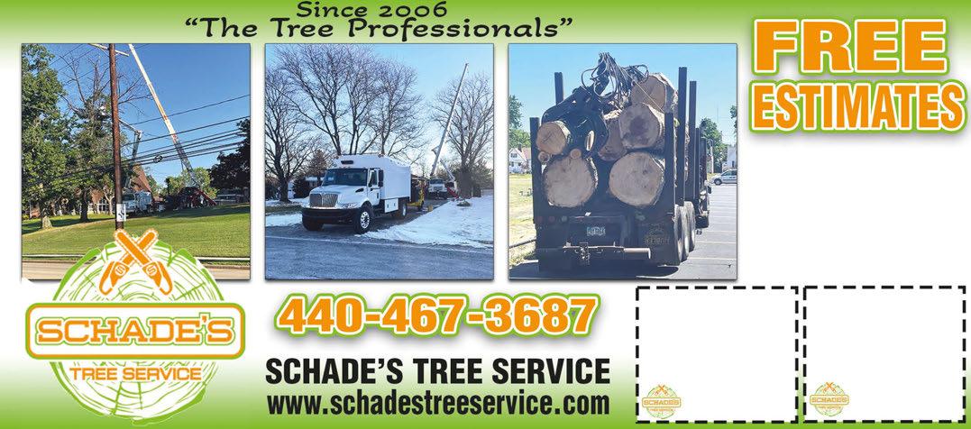 $50 OFF ANY JOB $500 OR MORE Valid with coupon. Not valid with any other offers. Expires 7/11/24 $100 OFF ANY JOB $1000 OR MORE Valid with coupon. Not valid with any other offers. Expires 7/11/24 SERVICES: TREE REMOVAL TREE TRIMMING STUMP GRINDING 440-628-8688 AAALandscapingSupply.com aaa.landscapingllc@yahoo.com WE INSTALL! FREE ESTIMATES. CALL TODAY! 9652 S. Akins Rd. North Royalton MULCH $33/yd. FREE Delivery on Mulch Orders Full Truck ONLY of 12 Yards (Within 5 Miles) Double Shredded Mulch $33.00 Triple Shredded Mulch $36.00 Basket of Boulders from $225.00 to $275.00 We Sell Ground Protecting Mats $200 Per Piece •Topsoil •Garden Soil •Mulch •Stone •Hardwood Mulch •Sand Stone •Wash Gravel 57, 34 & 8 •Bluestone •Limestone 57, 304, 411 •Mason Sand •Oversized Washed Gravel (4”-10”) •Boulders Available In Any Size