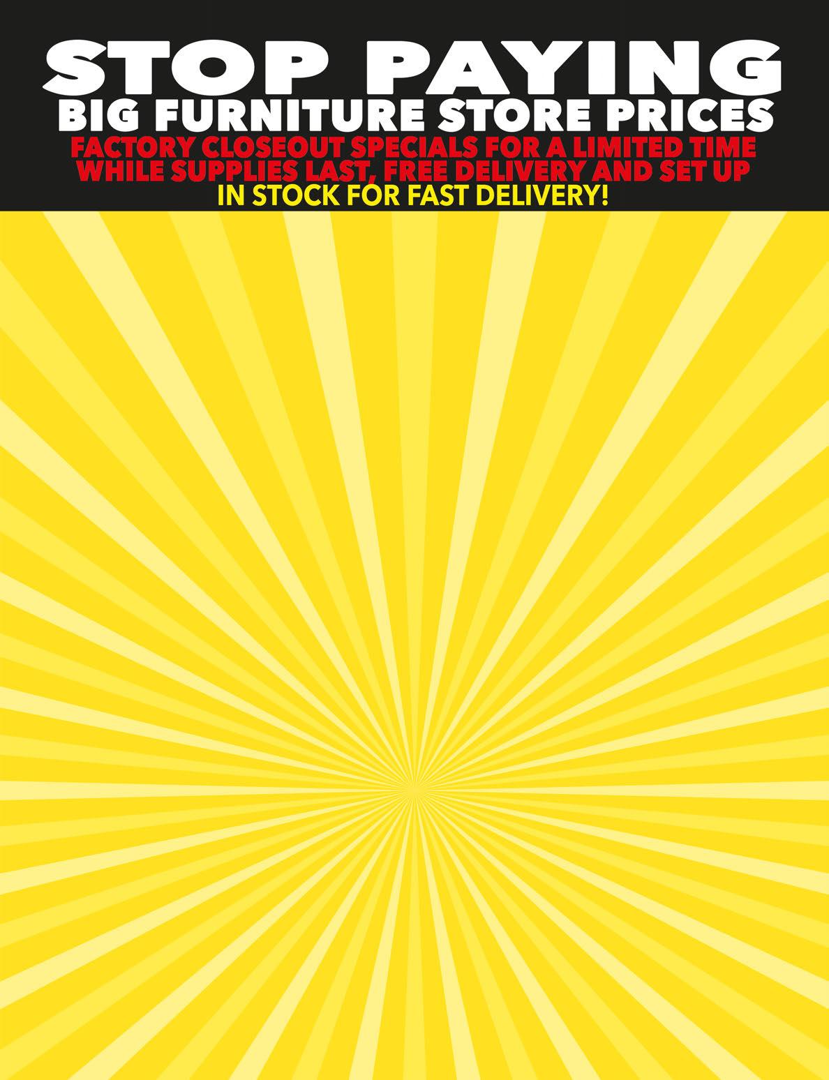 18 MONTHS / $999 MINIMUM PURCHASE REQUIRED. CAN’T BE COMBINED WITH DISCOUNT OFFERS. OFFERED BY SYNCHRONY. DON’T WAIT ON FURNITURE, WE HAVE THOUSANDS OF ITEMS IN STOCK!