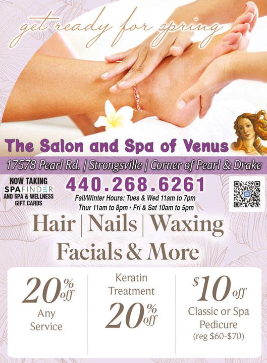 ONLINE ORDERING NEW DELIVERY Visit donramon-granfiestamex.com for other locations & menu Visit donramon-granfiestamex.com for other locations & menu Go To donramon-granfiestamex.com & Select Delivery or Pick-Up Gran Fiesta Mex Strongsville Same management as Don Ramon Strongsville 18737 Royalton Rd. 440-846-2313 $400 OFF Any Purchase of $20 or More (Tax Not Included) DINE IN ONLY. Valid at all locations listed. One coupon per table per party. Not valid w/any other offers or special of the day. Not valid on alcohol. Exp 4-11-24 $600 OFF Any Purchase of $30 or More (Tax Not Included) DINE IN ONLY. Valid at all locations listed. One coupon per table per party. Not valid w/any other offers or special of the day. Not valid on alcohol. Exp 4-11-24 $1000 OFF Any Purchase of $50 or More (Tax Not Included) DINE IN ONLY. Valid at all locations listed. One coupon per table per party. Not valid w/any other offers or special of the day. Not valid on alcohol. Exp 4-11-24 Of equal or greater value. Dine in only. Not valid with any other specials or coupons. MUST MENTION AD. OPEN EASTER! B B B herbspaintinginc.com HERB’S PAINTING INC. ALUMINUM PAINT SPECIALISTS FREE ESTIMATES QUALITY WORK COMPETITIVE PRICES ALUMINUM SIDING OR WOOD HOUSES ON COMPLETE EXTERIOR PAINT JOB SAVE $150 IN 2024 With This Coupon. Interior Paint Job 5% OFF On Any Service • Paint Walls/Ceilings • Paint/Stain Woodwork • Wallpaper Stripping • Patches & Repairs (3 Room Minimum) With This Coupon. WE STRIP WALLPAPER WE PAINT BASEMENT FLOORS 330-725-7408 Direct Message by Text 330-391-0398 330-225-7475 SINCE 1986