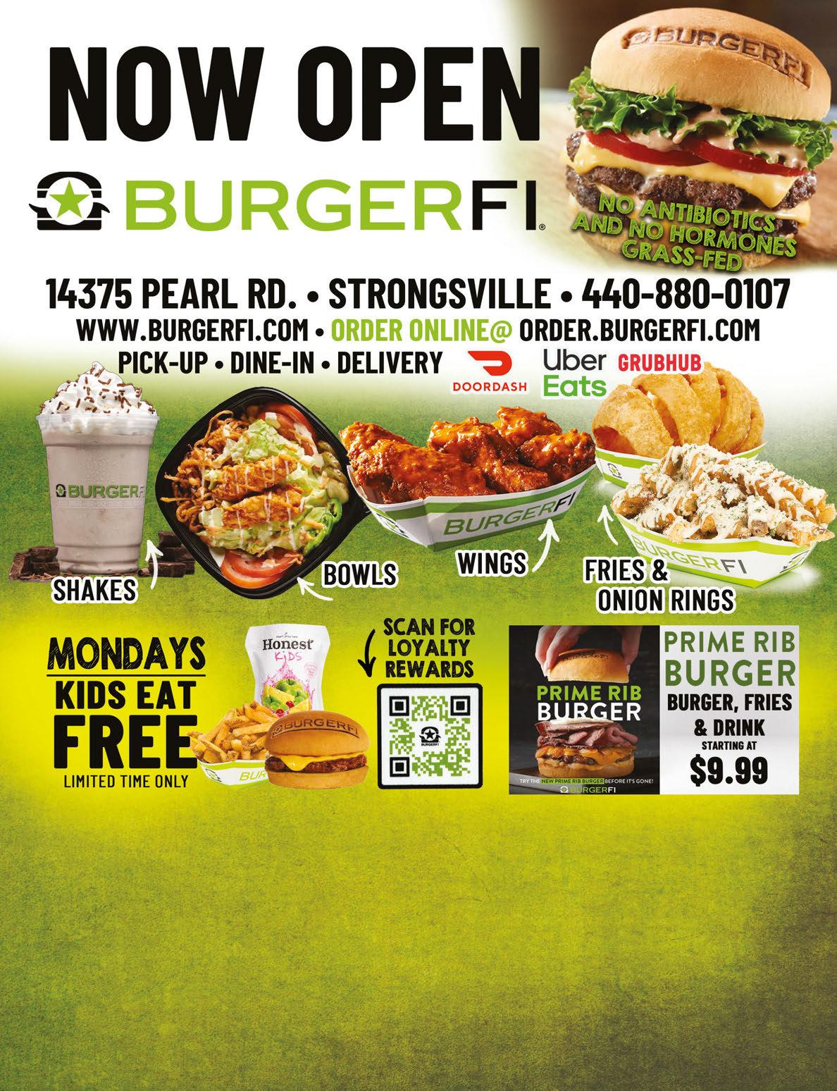 FREE KIDS MEAL WITH PURCHASE OF A REGULAR MEAL Offer valid only at BurgerFi Strongsville. Expires on 4/11/2024. Cannot be combined with any other offer or BurgerFi Reward. No Substitutions. In-restaurant orders only; offer not valid for online, phone, or delivery orders. © 2024 BURGERFI International, Inc. FREE FRIES WITH PURCHASE OF A BURGER & DRINK Offer valid only at BurgerFi Strongsville. Expires on 4/11/2024. Cannot be combined with any other offer or BurgerFi Reward. No Substitutions. In-restaurant orders only; offer not valid for online, phone, or delivery orders. © 2024 BURGERFI International, Inc. $5 OFF PURCHASE OF $30 OR MORE Offer valid only at BurgerFi Strongsville. Expires on 4/11/2024. Cannot be combined with any other offer or BurgerFi Reward. No Substitutions. In-restaurant orders only; offer not valid for online, phone, or delivery orders. © 2024 BURGERFI International, Inc. BUY ONE SHAKE GET 2ND SHAKE FREE Offer valid only at BurgerFi Strongsville. Expires on 4/11/2024. Cannot be combined with any other offer or BurgerFi Reward. No Substitutions. In-restaurant orders only; offer not valid for online, phone, or delivery orders. © 2024 BURGERFI International, Inc.