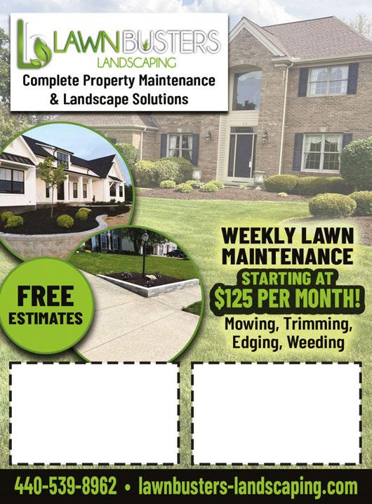 $50 OFF ANY JOB $500 OR MORE Valid with coupon. Not valid with any other offers. Expires 4/11/24 $100 OFF ANY JOB $1000 OR MORE Valid with coupon. Not valid with any other offers. Expires 4/11/24 SERVICES: TREE REMOVAL TREE TRIMMING STUMP GRINDING 330.241.0660 Check Out Our Packages www.niptuckauto.com GET YOUR CAR PROTECTED! •Interior&ExteriorDetailing•WindowTint•GlassProtection •FullPaintCorrection&CeramicCoating•RustPreventionUsingFluidFilm 15% OFF BRONZE OR SILVER FULL INTERIOR, EXTERIOR CLEANING Not to be combined with any other offer. Expires 5/11/24 $100 OFF CERAMIC OR GRAPHENE COATING Including Full Paint Correction and FREE Interior Not to be combined with any other offer. Expires 5/11/24 MINI $149FULL DEEP CLEAN OF INTERIOR WITH EXTERIOR WASH AND TIRES Additional charge for larger/excessive dirty vehicles. Not to be combined with any other offer. Expires 5/11/24 1545 W. 130th Street | Unit B | HINCKLEY Book Now for Your 2024 Project and Enjoy a 10% Discount Valid with coupon. Expires 3/31/24