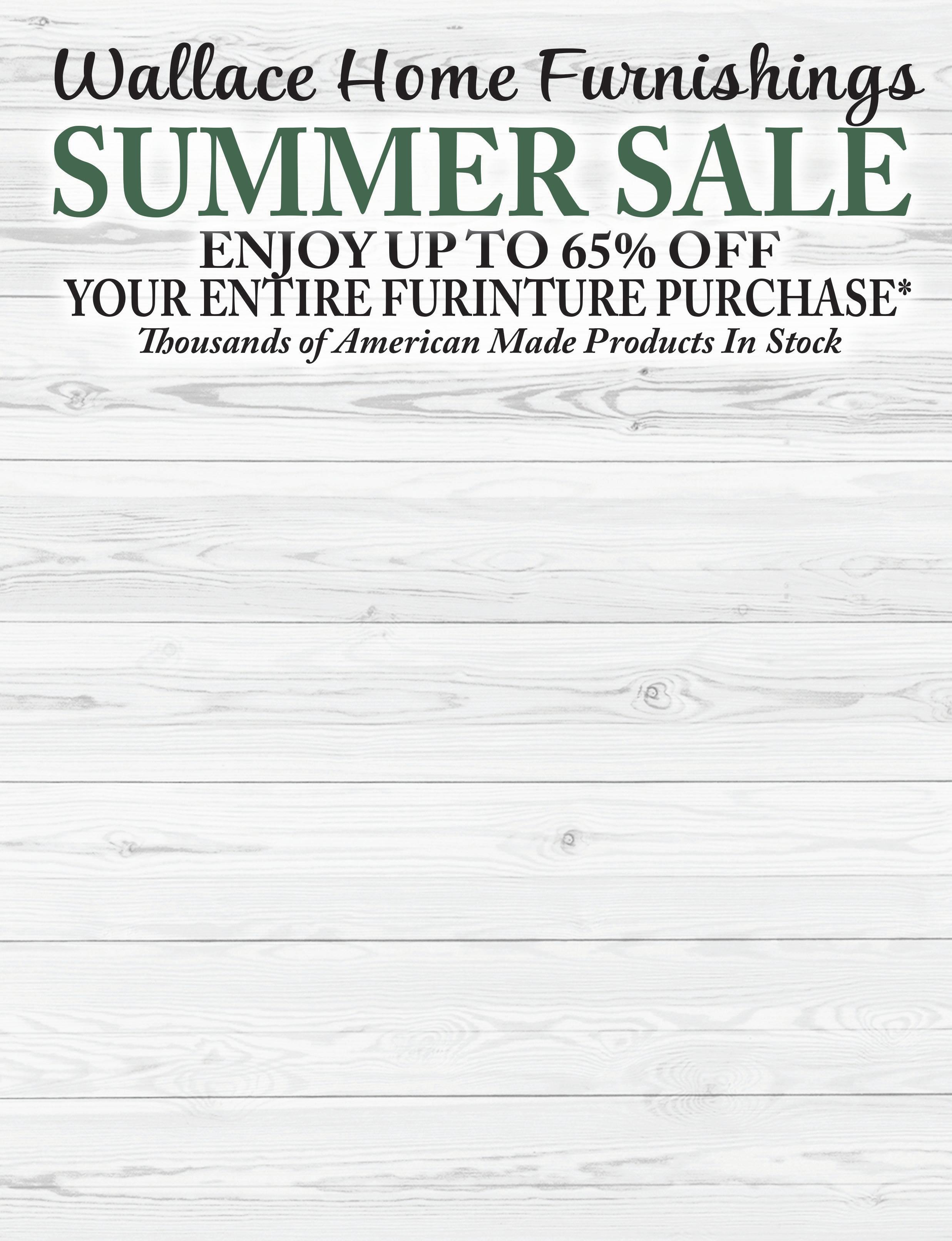 SOFA $1599 LOVESEAT $1499 GLIDER RECLINER $899 LANE TAUPE, SMOKED GRAY, CHOCOLATE, NAVY BLUE SOFA $799 LOVE SEAT $699 CHAIR 1/4 $599 OTTOMAN $399 FREE LAYAWAY. BRIGHT WHITE COUNTER HEIGHT TABLE WITH STORAGE 4 CHAIRS/ OVERSIZE BENCH $1799 FARMHOUSE DINING TABLE OR COUNTER HEIGHT WITH 6 CHAIRS $1999 A MUST SEE! LIMITED TIME ONLY ROUND TABLE 4 CHAIRS $899 GEL MEMORY FOAM POCKET COIL ROCKER RECLINER OTTER, CHOCOLATE, SLATE $699 • Pocketed Coil Technology • AirCool Foam • DualCool Technology • Reduced Motion Transfer • Gel Memory Foam FULL MEDIUM EURO TOP SET $999 QUEEN MEDIUM EURO TOP SET $1099 KING MEDIUM EURO TOP SET $1499 LOCALLY OWNED & OPERATED OVER 25 YEARS EXPERIENCE FREE DELIVERY & SET UP With coupon. Expires 9-15-22 883 North Court St., Medina (Behind Starbucks in the Plaza with Sherwin Williams) 330.723.3006 | www.wallacehomefurnishings.com SPECIAL FINANCING & MILITARY DISCOUNTS AVAILABLE