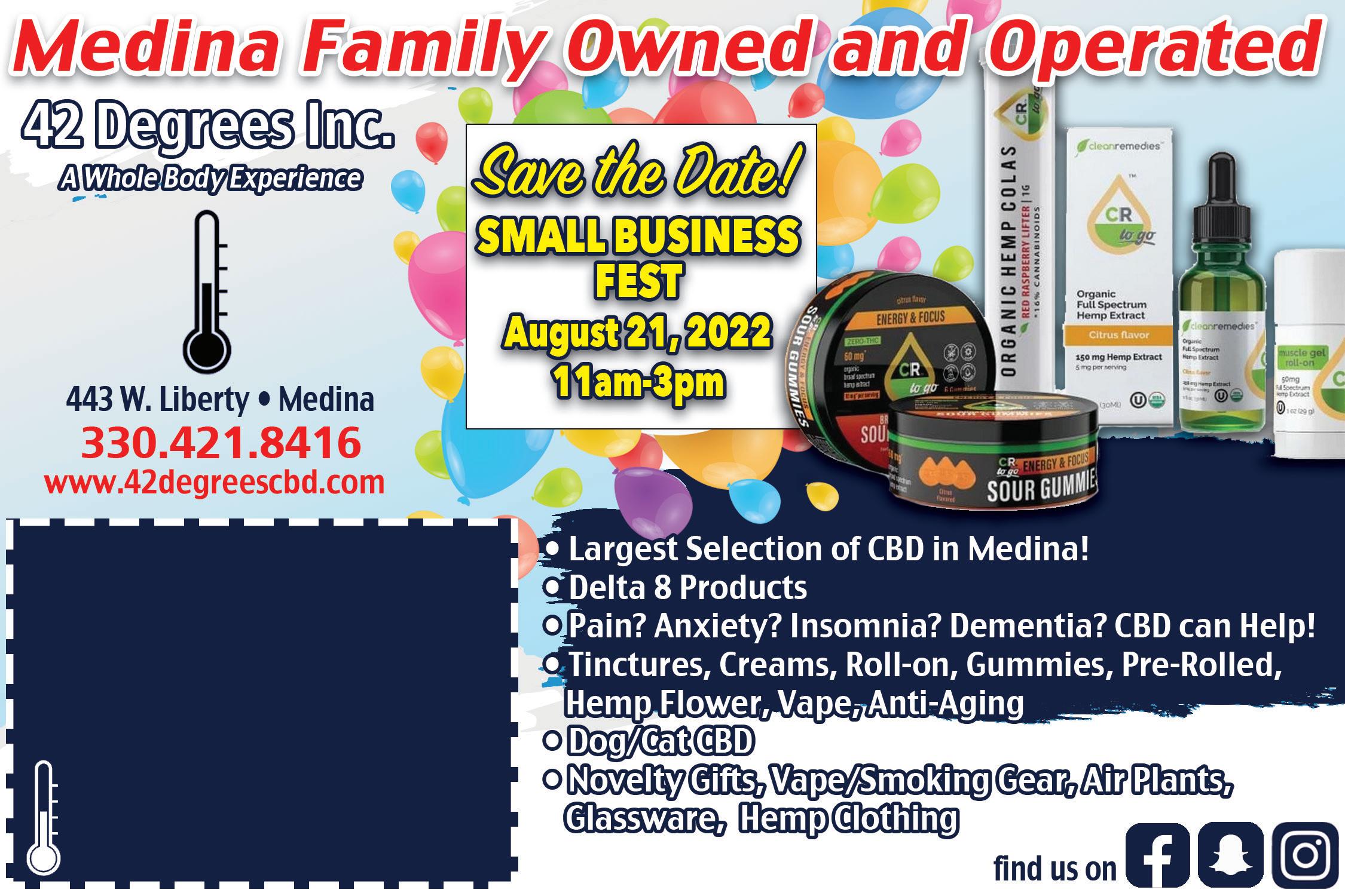 $5.00 OFF Any Catering Order Of $100 or More Good only on Catering Menu items. Not good on specials, or any beverage. One coupon per order. Must present coupon. Expires 9/15/22. SUGAR BAR GRAND OPENING OUR 2ND LOCATION 984 N. COURT ST MEDINA 440-454-4665 www.medinasugarbar.com Online Booking Available! BODY SUGARING • SKINCARE • FACIALS ALL NATURAL HAIR REMOVAL FROM HEAD TO TOE $20 OFF ANY SERVICE $70 OR MORE Not to be combined with any other offer. Medina location only. Expires 10/15/22