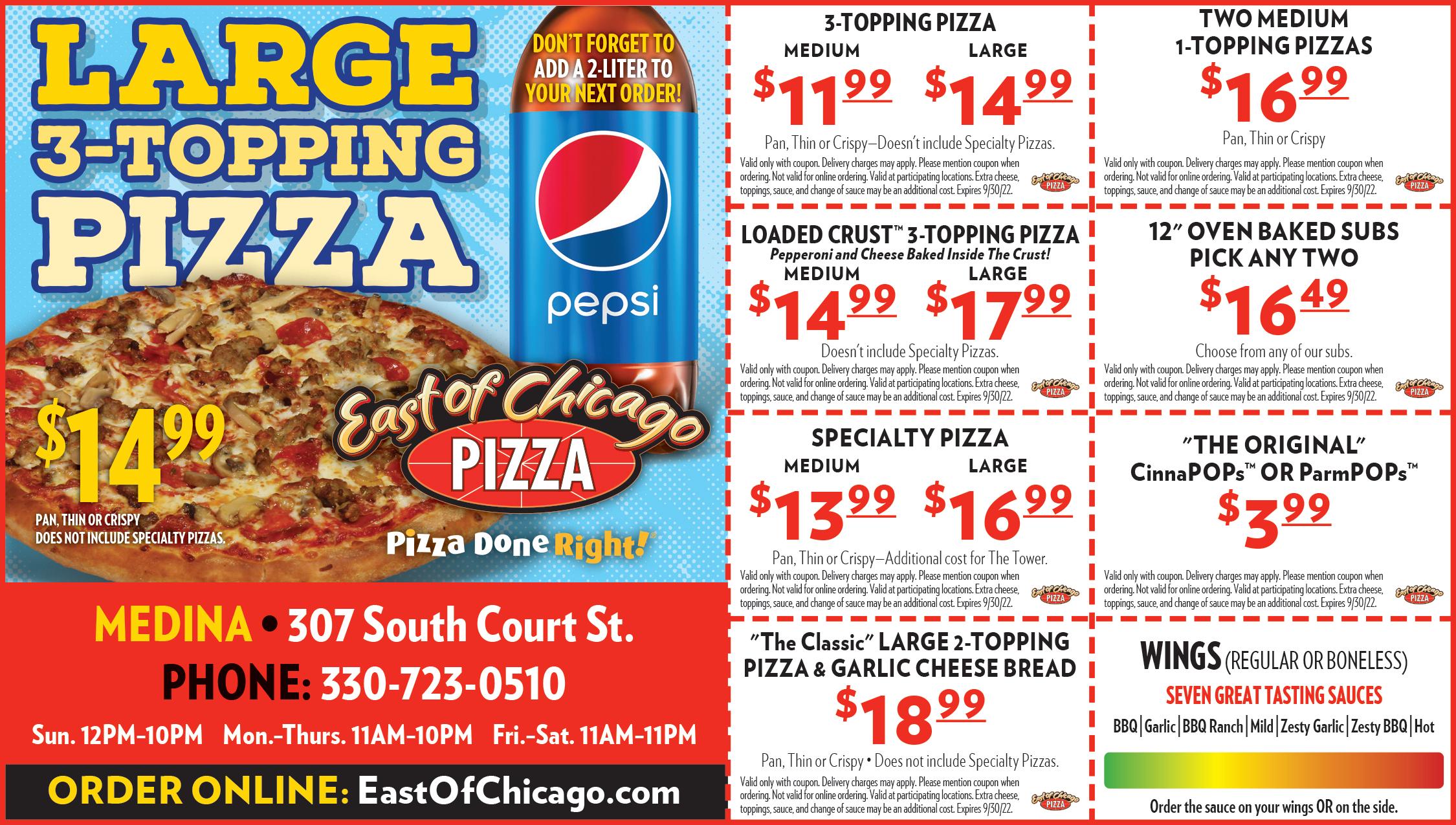 Toppings Extra. One per customer. Not valid with any other offer or coupon.