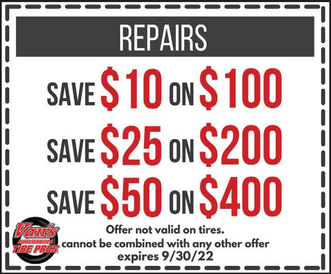 SAVE $20 OFF SAVE $15 Must present coupon prior to service. Cannot be combined with any other offer or coupon. Expires 9/15/22 Must present coupon prior to service. Cannot be combined with any other offer or coupon. Expires 9/15/22 Must present coupon prior to service. Cannot be combined with any other offer or coupon. Expires 9/15/22 Must present coupon prior to service. Cannot be combined with any other offer or coupon. Expires 9/15/22 2022 SERVICE SPECIAL $10 OFF $100 or More $20 OFF $200 or More $30 OFF $300 or More SAVE UP TO $20 on ANY BRAKE SERVICE ($10 per Axle) ON ANY AIR CONDITIONING SERVICE SAVE $5 OFF Must present coupon prior to service. Cannot be combined with any other offer or coupon. Expires 9/15/22 ANY OIL CHANGE SERVICE DIAGNOSTIC TESTING BACK-TO-SCHOOL SPECIAL BACK-TO-SCHOOL SPECIAL BACK-TO-SCHOOL SPECIAL BACK-TO-SCHOOL SPECIAL BACK-TO-SCHOOL SPECIAL Protect Your Gutters WITHTHE #1 MICRO-MESH GUARD ONTHE MARKET! 440-595-3896 thegutterboys.com GUARDSTTER | GUS | CLEANING The Gutter Boys 440-732-4056 CALL TODAY FOR A FREE ONSITE CONSULTATION AND ESTIMATE! Expires•COUPON CODE: 9/15/22 TMS08 $500OFF $250OFF Whole House Guard Installation Whole House Seamless Guard Installation 100 ft minimum purchase required. Present ad. Terms and restrictions apply. Not valid with any other offers. TMS ad must be mentioned. Offer expires 9/1/22. TMS08 5 “Go with Northeast Ohio's Highest Rated Power Washing Company”- Owner Ken Wilson PristineClean.com Pristine Clean Features an Eco-Friendly Process House Washing | Roof Cleaning | Concrete Washing & Sealing Financing Available More Than Just A Power Washing Wash |Protect |Renew We’ve Stocked Up! Most Jobs Complete Within A Couple Of Weeks! Owner -AnthonyAlberino Concrete Washing & Sealing Roof Washing HouseWashing No Interest Or Payments For 18 Months Terms and restrictions apply. Cannot be combined with any other offer. For Full House, Roof CleanConcrete Driveway Wash & Seal. or Jobs Only 20% Off Power Washing Our Biggest Discount Ever!