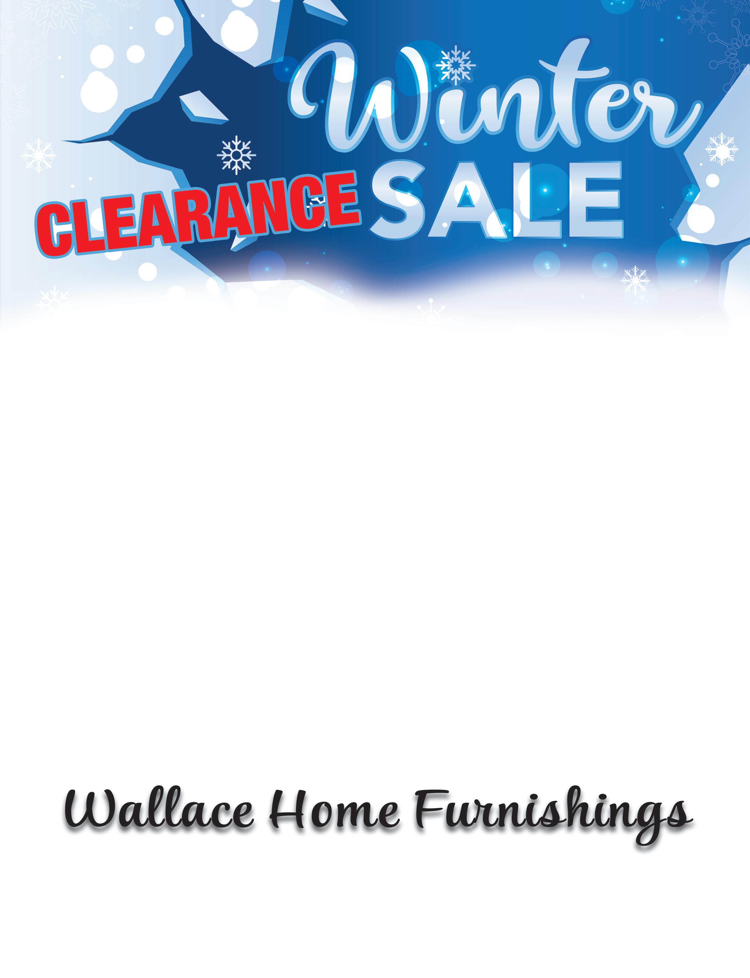 FREE CONTACTLESS DELIVERY ON MINIMUM PURCHASE OF $299. FREE LAYAWAY LOCALLY OWNED & OPERATED OVER 25 YEARS EXPERIENCE CURBSIDE PICKUP, DELIVERY & SET UP! 883 North Court St., Medina (Behind Starbucks in the Plaza with Sherwin Williams) 330.723.3006 | www.wallacehomefurnishings.com SPECIAL FINANCING & MILITARY DISCOUNTS AVAILABLE Family Owned and Operated WE HAVE THOUSANDS OF AMERICAN MADE PRODUCTS IN STOCK READY FOR FAST DELIVERY! DON’T FORGET TO CHECK OUT OUR WINTER FLOOR MODEL SALE! SAVE UP TO 75%!!! Come Check Out Our Long-Term Financing Displayed In Store WHILE SUPPLIES LAST! SOFA $699 LOVESEAT $599 SOFA $899 LOVESEAT $799 SWIVEL CHAIR $699 OTTOMAN $399 Displayed In Store Beautiful A Must See! Displayed In Store TOP SELLER! SECTIONAL WITH REVERSIBLE CHASE $1699 UPGRADE TO ADJUSTABLE BED BASE FOR ONLY $399 • Improves Sleep Quality • Eases Back Pain • Lessens Apnea & Snoring FREE MATTRESS PLATFORM OR QUEEN BOX with the purchase of same size Mattress Cannot be combined with any other offer. While supplies last. Expires 1/15/23 CLEARANCE PRICING! IN STOCK MATTRESS SAVINGS! QUEEN FIRM OR PT MATTRESS ONLY $1399 KING FIRM OR PT MATTRESS ONLY $1799 ORTHOPEDIC MATTRESS FIRM OR PLUSH MATTRESS TWIN $399 FULL $449 QUEEN $499 KING $699 LUXURY PILLOW TOP MATTRESS TWIN $499 FULL $549 QUEEN $599 KING $799 FLIPPABLE 2-SIDED PT OR PLUSH MATTRESS TWIN $699 FULL $749 QUEEN $799 KING $1099 BEAUTYREST HYBRID MATTRESS TWIN $999 FULL $1099 QUEEN $1199 KING $1399