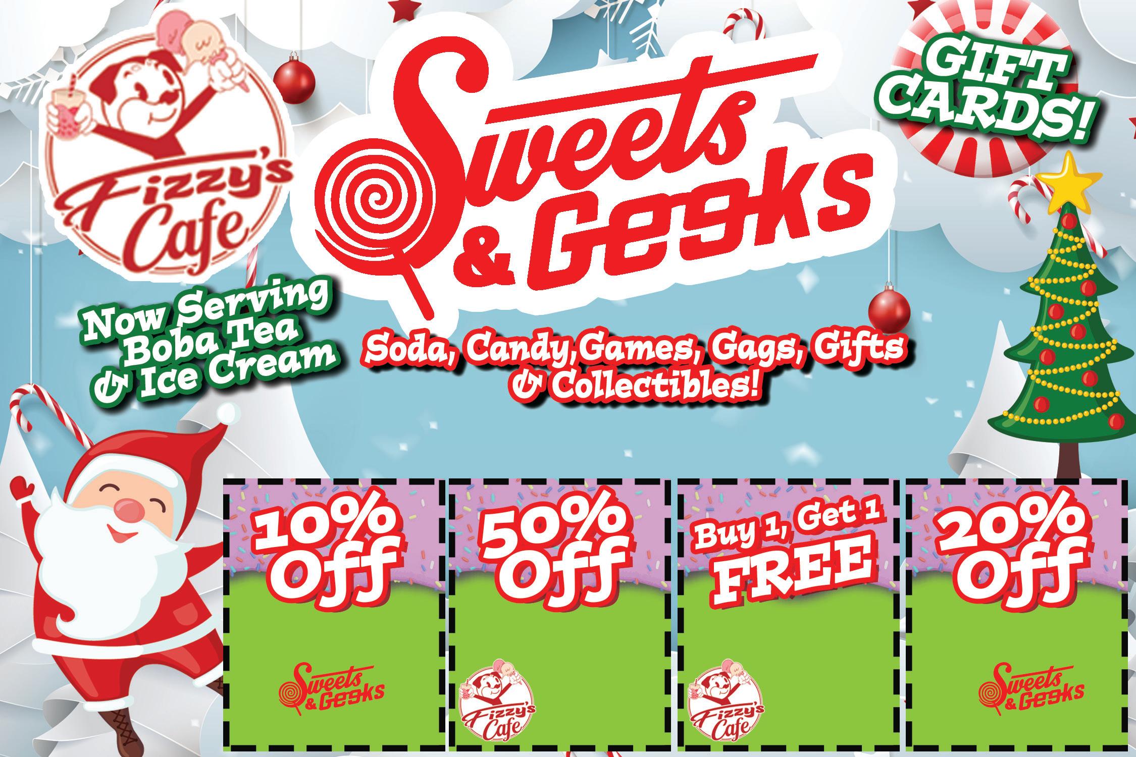 342 E. Smith Road • MEDINA 330.662.4272 • www.sweetsandgeeks.com With coupon. Cannot be combined with other offers or rewards. Expires 1-19-23 CHRISTMAS CANDY FRUIT BOBA 16oz PURCHASE With coupon. Cannot be combined with other offers or rewards. Expires 1-19-23 With coupon. Cannot be combined with other offers or rewards. Expires 1-19-23 With coupon. Cannot be combined with other offers or rewards. Expires 1-19-23 ICE CREAM SCOOP Cone or Cup
