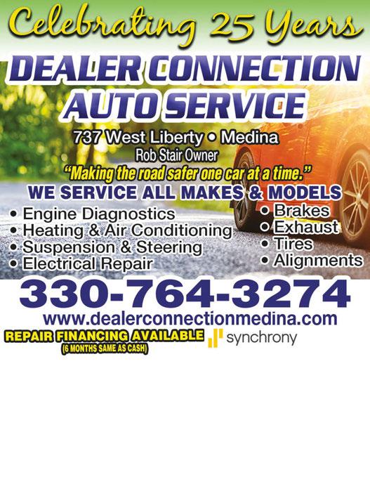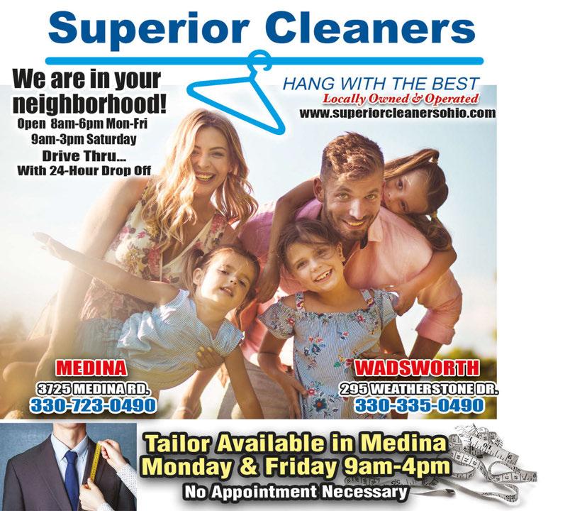 $75 $55 $45 WWW.SPECIALTOUCHCLEANERS.COM 330-922-4780 With coupon. Not valid with any other offer. Expires 6/15/23. With coupon. Not valid with any other offer. Expires 6/15/23. With coupon. Not valid with any other offer. Expires 6/15/23. 930 WEST LIBERTY STREET MEDINA 330-952-0464 Monday thru Thursday 11am-10pm • Friday 11am-10:30pm Saturday 11am-10:30pm • Sunday 11am-9pm GIFT CERTIFICATES ALWAYS AVAILABLE PATIO OPEN!