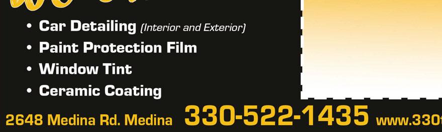 gutterguard1.com 440-366-0688 INSTALLS OVER EXISTING GUTTERS Always On Time, Friendly and Professional BBB ACCREDITED BUSINESS MADE IN OHIO FREE ESTIMATES•SENIOR DISCOUNTS•VETERAN DISCOUNTS $300 OFF Your Order(Minimumfootage required) Offerexpires6-15-23 •Smooth, sloped and self-shedding profile works great for maple spinners, pine needles, roof grit and other small leaves. •Lifetime Performance Warranty •NOT a screen or filter that can clog •Installation Includes: - Gutter & Downspout Cleaning - Resealing seams & Tightening - Proper slope alignment •Proven to handle heavy rains and 110mph winds. •Patented“Bird Guard System”and comes in 14 colors. Shop Local And See The Difference Made in USA Serving Northeast Ohio Since 1998 Heat Available For Open Gutters & Most Existing Gutter Covers. AL ! L ed S l c o re fo en e s B C ’t l o n g o ! D GUTTER HEATING AVAILABLE FOR ICE DAM PROTECTION 2777 Medina Rd Medina Ohio (Next to Jurassic Mountain) 330-572-4600 Full Menu at prehistoricpizzacompany.com Wed - Fri 4pm-9pm Sat 11am-9pm and Sun 11am-6pm Not valid with any other offer. Expires 6/15/23. Not valid with any other offer. Expires 6/15/23. Not valid with any other offer. Expires 6/15/23. Not valid with any other offer. Expires 6/15/23. Not valid with any other offer. Expires 6/15/23. 10 Pack Jurassic11.99Wings Hot, Mild, BBQ, Sweet Heat, Garlic Parmesan, Teriyaki Log Combo Box Mix of our Taco, Buffalo and Apple Logs 9.99 Any 6” Sub 5.99 Hot Italian, Ham and Cheese, Meatball Penne Pasta Meal 9.99 Includes Garlic Bread Add Meatball or Sausage $2 More Family Deal Large 1 Topping Pizza, 2 Liter Pop, 10 Wings & Log Combo Box 35.99 TRIPIZZATOPS 3 Medium 3 Topping Pizzas and a 2 Liter of Pop 29.99 JUST IN TIME FOR THE SUPER BOWL Not valid with any other offer. Expires 6/15/23.