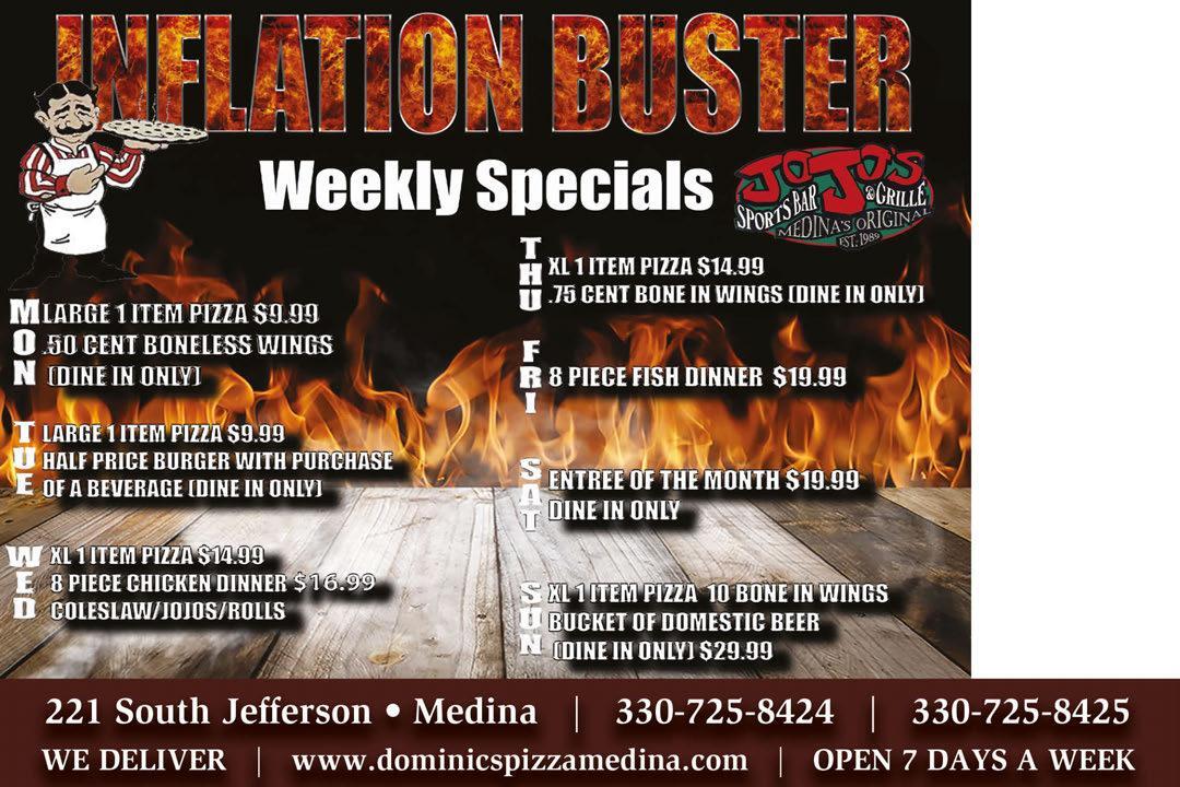 2777 Medina Rd Medina Ohio (Next to Jurassic Mountain) 330-572-4600 Full Menu at prehistoricpizzacompany.com Wed - Fri 4pm-9pm Sat 11am-9pm and Sun 11am-6pm Not valid with any other offer. Expires 11/10/22. Not valid with any other offer. Expires 11/10/22. Not valid with any other offer. Expires 11/10/22. Not valid with any other offer. Expires 11/10/22. Not valid with any other offer. Expires 11/10/22. 10 Pack Jurassic11.99Wings Hot, Mild, BBQ, Sweet Heat, Garlic Parmesan, Teriyaki Log Combo Box Mix of our Taco, Buffalo and Apple Logs 9.99 Any 6” Sub 5.99 Hot Italian, Ham and Cheese, Meatball New Ribeye Steak Sandwich 7.99 Family Deal Large 1 Topping Pizza, 2 Liter Pop, 10 Wings & Log Combo Box 35.99 342 E. Smith Road • MEDINA 330.662.4272 • www.sweetsandgeeks.com With coupon. Cannot be combined with other offers or rewards. Expires 11-10-22 HALLOWEEN CANDY FRUIT BOBA 16oz PURCHASE With coupon. Cannot be combined with other offers or rewards. Expires 11-10-22 With coupon. Cannot be combined with other offers or rewards. Expires 11-10-22 With coupon. Cannot be combined with other offers or rewards. Expires 11-10-22 ICE CREAM SCOOP Cone or Cup
