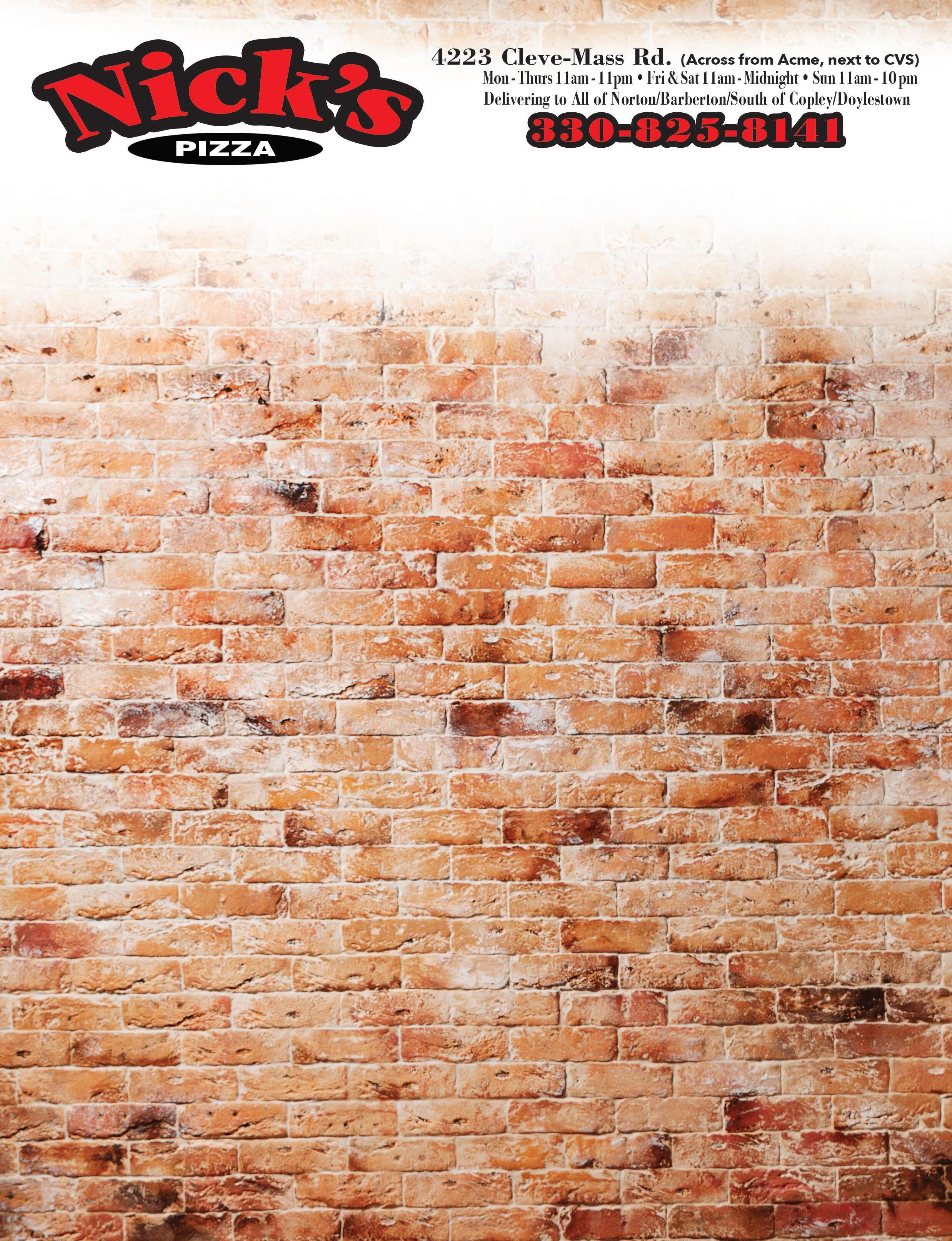 330-825-0999 Norton-Barberton 3725 S. Cleveland-Massillon Rd. www.gioninos.com Large 16” 1-Item Pizza Only $1495 GIONINO’S PIZZERIA Valid only with coupon. Delivery charge may apply. Not valid with other offers. Valid only at Norton location. Expires 12-1-22. TMS GIONINO’S PIZZERIA Valid only with coupon. Delivery charge may apply. Not valid with other offers. Valid only at Norton location. Expires 12-1-22. TMS GIONINO’S PIZZERIA Valid only with coupon. Delivery charge may apply. Not valid with other offers. Valid only at Norton location. Expires 12-1-22. TMS GIONINO’S PIZZERIA Valid only with coupon. Delivery charge may apply. Not valid with other offers. Valid only at Norton location. Expires 12-1-22. TMS Medium 12” 2-Item Pizza Only $1245 $100 OFF A Dozen Wings $300 OFF Any Large Specialty Pizza (NO SUBSTITUTIONS) Monday - Saturday 11am-9pm Sunday 1pm-8pm CLOSED Tuesdays WE DELIVER