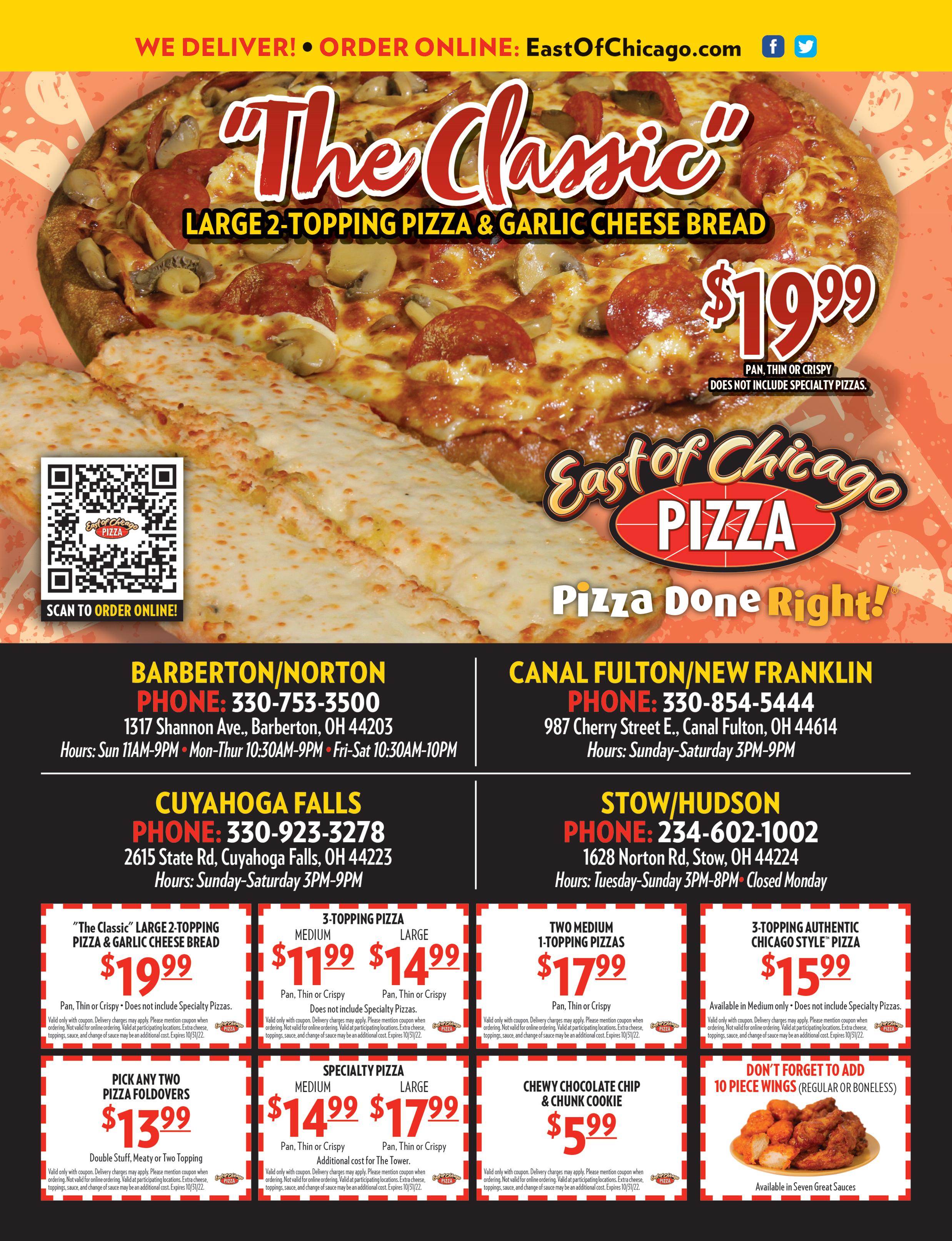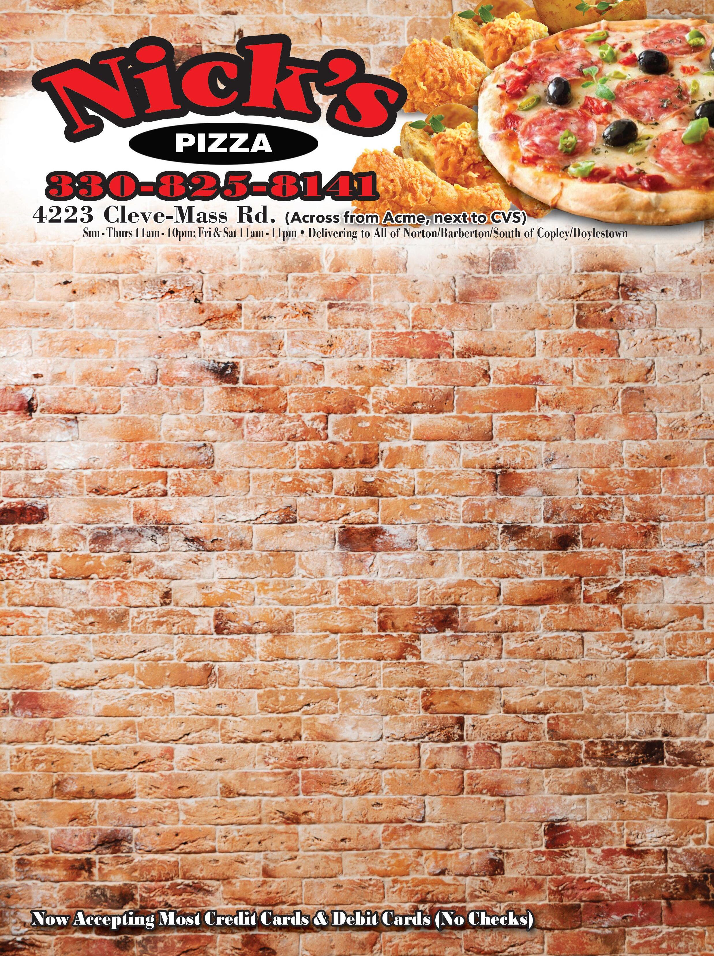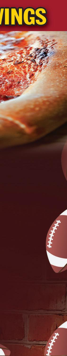 330-825-0999 Norton-Barberton 3725 S. Cleveland-Massillon Rd. www.gioninos.com Large 16” 1-Item Pizza Only $1495 GIONINO’S PIZZERIA Valid only with coupon. Delivery charge may apply. Not valid with other offers. Valid only at Norton location. Expires 9-29-22. TMS GIONINO’S PIZZERIA Valid only with coupon. Delivery charge may apply. Not valid with other offers. Valid only at Norton location. Expires 9-29-22. TMS GIONINO’S PIZZERIA Valid only with coupon. Delivery charge may apply. Not valid with other offers. Valid only at Norton location. Expires 9-29-22. TMS GIONINO’S PIZZERIA Valid only with coupon. Delivery charge may apply. Not valid with other offers. Valid only at Norton location. Expires 9-29-22. TMS Medium 12” 2-Item Pizza Only $1245 $100 OFF A Dozen Wings $300 OFF Any Large Specialty Pizza (NO SUBSTITUTIONS) Monday - Saturday 11am-9pm Sunday 1pm-8pm CLOSED Tuesdays WE DELIVER (Up to 4 People) Valid with coupon. Expires 9/29/22. DAILY SPECIALS Tuesday $2.00 Hamburgers $2.00 Tacos or 3 for $5 $2.50 Cheeseburgers Wednesday 99¢ Wings $7.99 Gyro & Fries $2.50 1/4 lb Hot Dogs Thursday $2.50 Hot Dogs 99¢ Wings Chicken Buffet $12.00 Includes 2 Meat Buffet (Chicken Plus a 2nd Meat) Plus a Dessert Friday 3 Pc. Fish Dinner $10.99 Homemade Soups Everyday $3.00 OFF PURCHASE OF $20 OR MORE Valid with coupon. Not Valid with any other offer. Expires 9/29/22 Booking Parties for 2022 / 2023 for Banquet Hall (call for details) Join Us on the Patio!