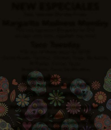 for $10 (except coco loco, topshelf, key lime) Taco Tuesday Pick any of these tacos for $3.50 Carne Asada, Carnitas, Chicken Tinga, Barbacoa, Al Pastor, Corner Tacos, Street Tacos, Tacos De Alambre Miercoles (Wednesday) Choose any flavor Mojito for $9 Thirsty Thursday Any draft beer for $4 (Ask your server for new or seasonal beer) Tequila Loco Friday Choose a silver tequila below for $5 1800, Hornitos, Traditional, Jose Cuervo