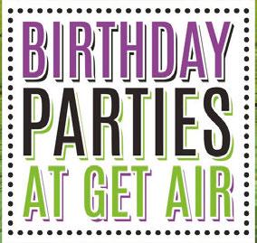 CLUB AIR FRI & SAT 8PM – 10PM STARTING AT $225 $50 OFF YOUR NEXT PARTY WHEN YOU BOOK A PARTY WITH 10 OR MORE JUMPERS With coupon. Not valid with other o ers. Not valid on holidays and school holidays. Limited to ONE per household. One time use. Valid for one party only, please. Expires 5/15/2024 TRAMPOLINES FOAM PITS NINJA COURSE DODGE BALL TODDLER AREA PARTY ROOMS $5 OFF 2 HOUR JUMP PASS (LIMIT 4 GUESTS PER COUPON) With coupon. Not valid with other o ers. Not valid on holidays and school holidays. Limited to ONE per household. One time use. Valid for one person only, please. Expires 5/15/2024 FREE HOUR BUY 1 HOUR, GET 2ND HOUR FREE (SAME PERSON/SAME DAY) With coupon. Not valid with other o ers. Not valid on holidays and school holidays. Limited to ONE per household. One time use. Valid for one person only, please. Expires 5/15/2024 FREE HOUR BUY 1 HOUR, GET 2ND HOUR FREE (SAME PERSON/SAME DAY) With coupon. Not valid with other o ers. Not valid on holidays and school holidays. Limited to ONE per household. One time use. Valid for one person only, please. Expires 5/15/2024 GET OUT. GET ACTIVE. GET AIR. 7204 Pearl Road • Middleburg Heights • 440-591-6520 Get coupons/deals online at... GetAirCleveland.com