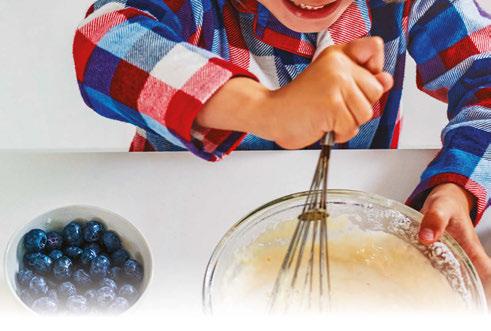 • Practice measuring together. Let children read the recipes and be in charge of portioning out ingredients. This reinforces temperature, ratios and fractions. Move on to more sophisticated tasks. Around age eight or nine, children can take on jobs like opening cans, scooping batter, pounding poultry, proo ng yeast, skewering kabobs, and slicing bread. Between the ages of 10 and 12 kids can start working independently in the kitchen, as long as an adult is home.